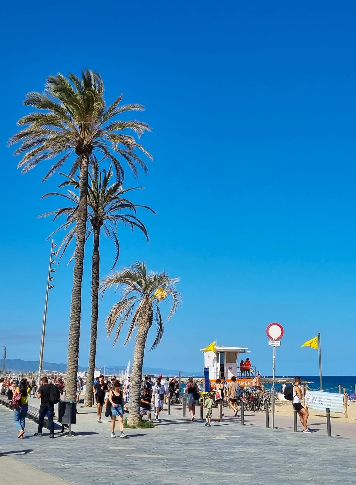 For lunch, I recommend trying one of the beachfront restaurants for some delicious paella or fresh seafood. If you’re feeling active, you can rent a bike or rollerblades to explore the long stretch of beaches. As the sun sets, the beach transforms into a popular spot for evening drinks and socializing.