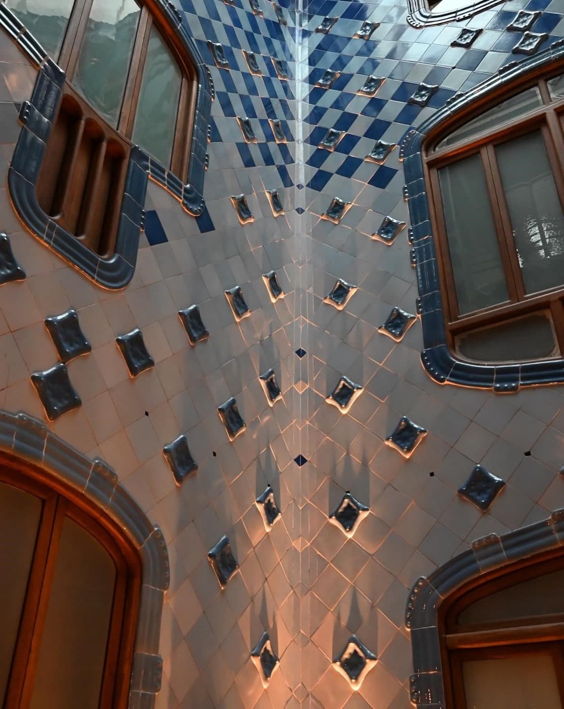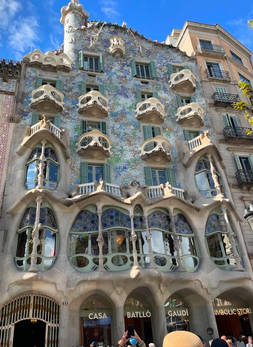 Casa Batlló, one of Gaudí’s most imaginative creations, is a true feast for the eyes. As I stood before its colorful, undulating facade, I felt like I was looking at a building straight out of a dream. The marine-inspired elements, from the wave-like balconies to the dragon-scale roof, showcase Gaudí’s unique vision and attention to detail.