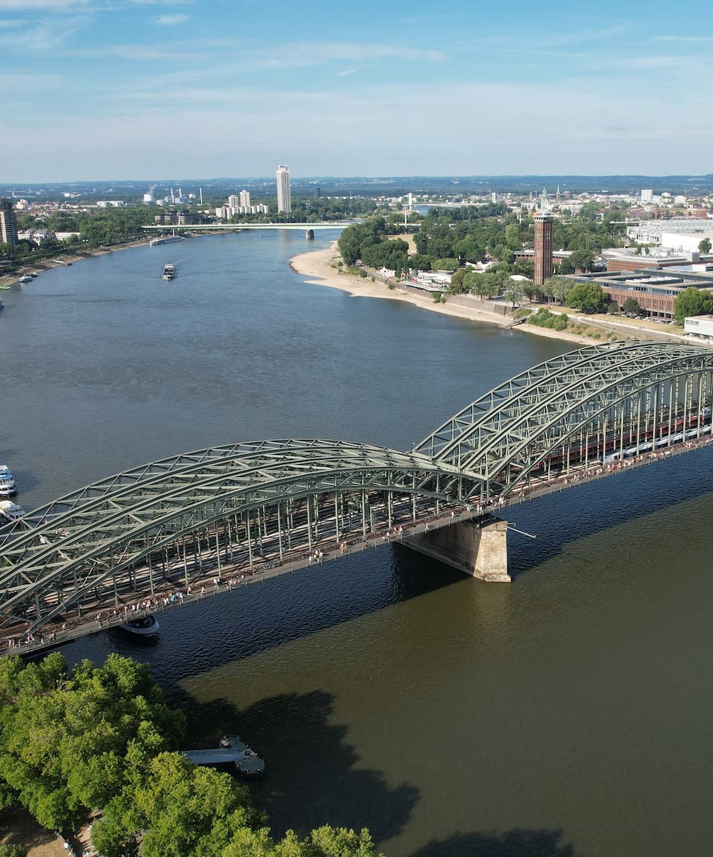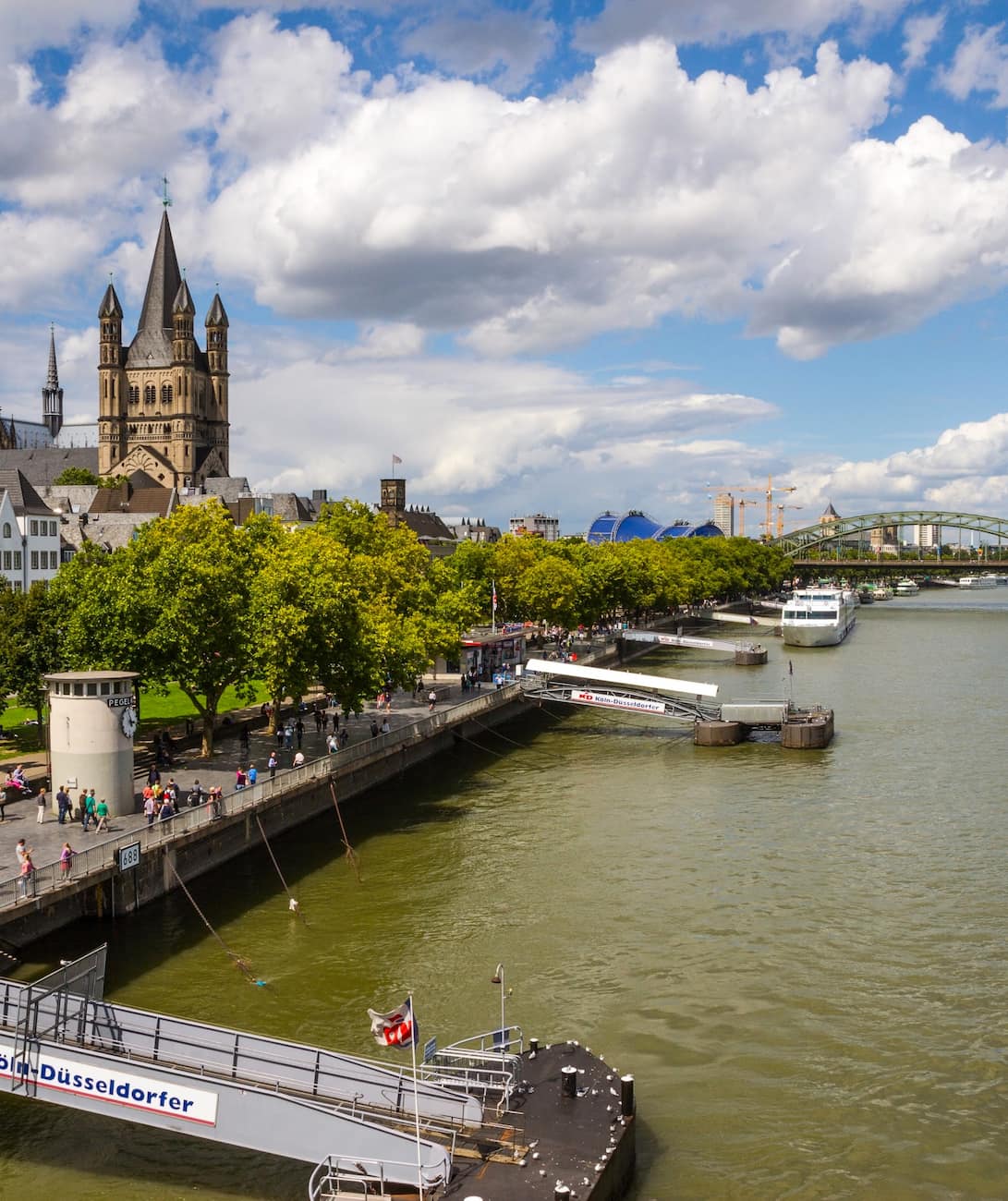 For free scenic views of Cologne, walk across the Hohenzollern Bridge, an iconic structure that offers stunning vistas of the cathedral and the Rhine River. The bridge is famous for its thousands of love locks, adding a romantic touch to your stroll. Another great spot for views is the Rheinauhafen, a modern harbor district with interesting architecture and riverside walkways. Here, you can admire the striking Kranhäuser (Crane Houses) and enjoy a leisurely promenade along the Rhine.