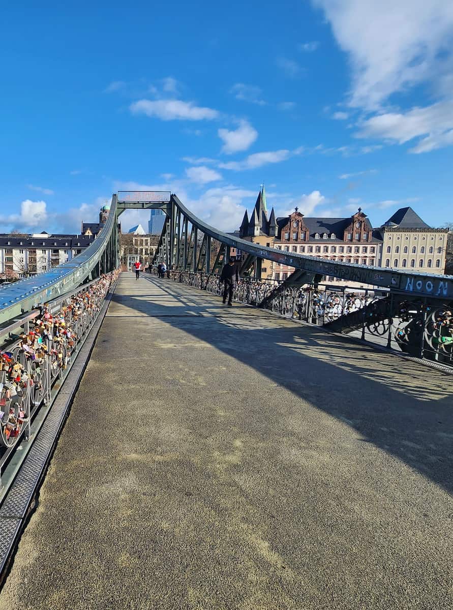One of my favorite things to do in Frankfurt is to stroll across the Eiserner Steg, a historic pedestrian bridge spanning the Main River. As I walked, I was treated to panoramic views of Frankfurt’s impressive skyline, a perfect blend of historic and modern architecture. Don’t miss the love locks attached to the bridge railings, a romantic tradition that’s become popular in recent years. For the best experience, I recommend visiting at sunset when the city lights begin to twinkle and the view becomes truly magical – it’s one of the top things to see in Frankfurt and it’s completely free!