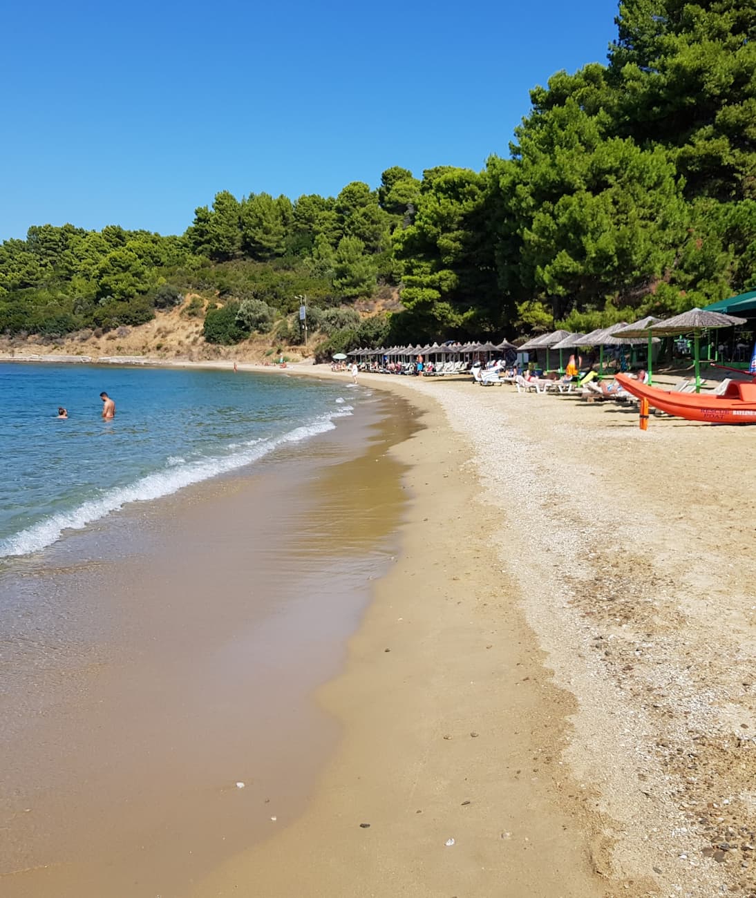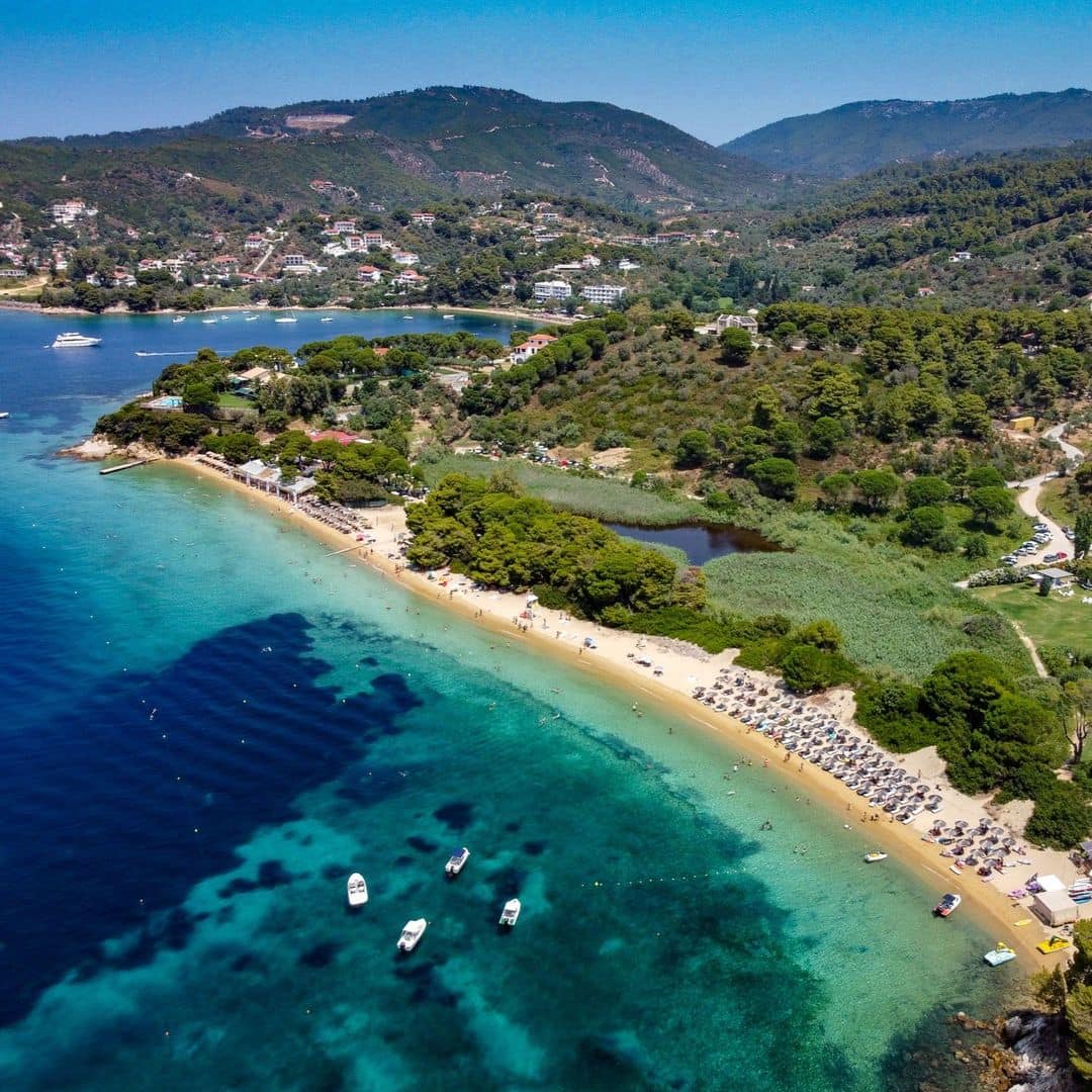 Family-friendly fun: Koukounaries Beach is one of the best sandy beaches on Skiathos and is perfect for families with young children. Its shallow waters are ideal for safe swimming, while nearby facilities offer everything from sunbeds to water sports rentals.