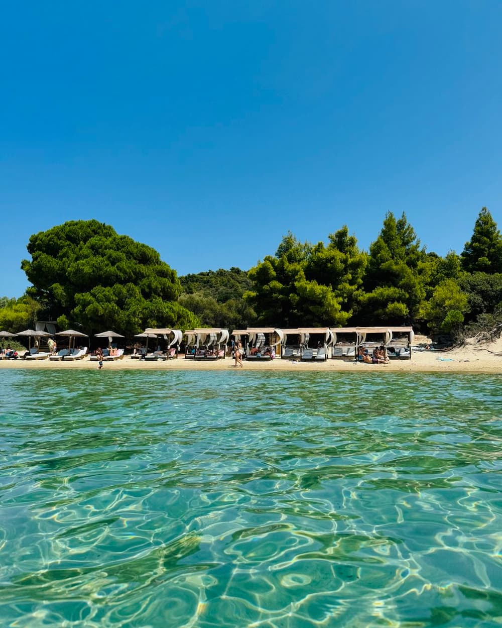 Natural beauty: Surrounded by pine trees that provide natural shade, Koukounaries Beach is also known for its clean waters and soft sand. It’s a great place for kids to play while parents relax.