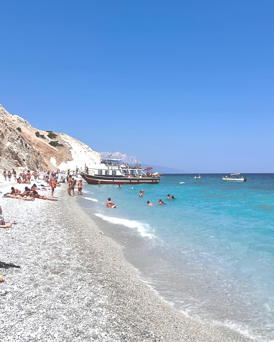 Top Tip: If you’re looking for a quieter experience, visit Paralia Vromolimnos in early May or late September when the crowds thin out but the weather is still warm.