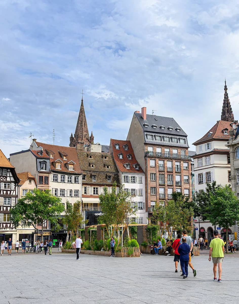 City center hub. Place Kléber, the largest square in Strasbourg’s city center, is a must-visit on any Strasbourg itinerary. The square is surrounded by beautiful buildings, including the Aubette, a neoclassical landmark that now houses art exhibitions.