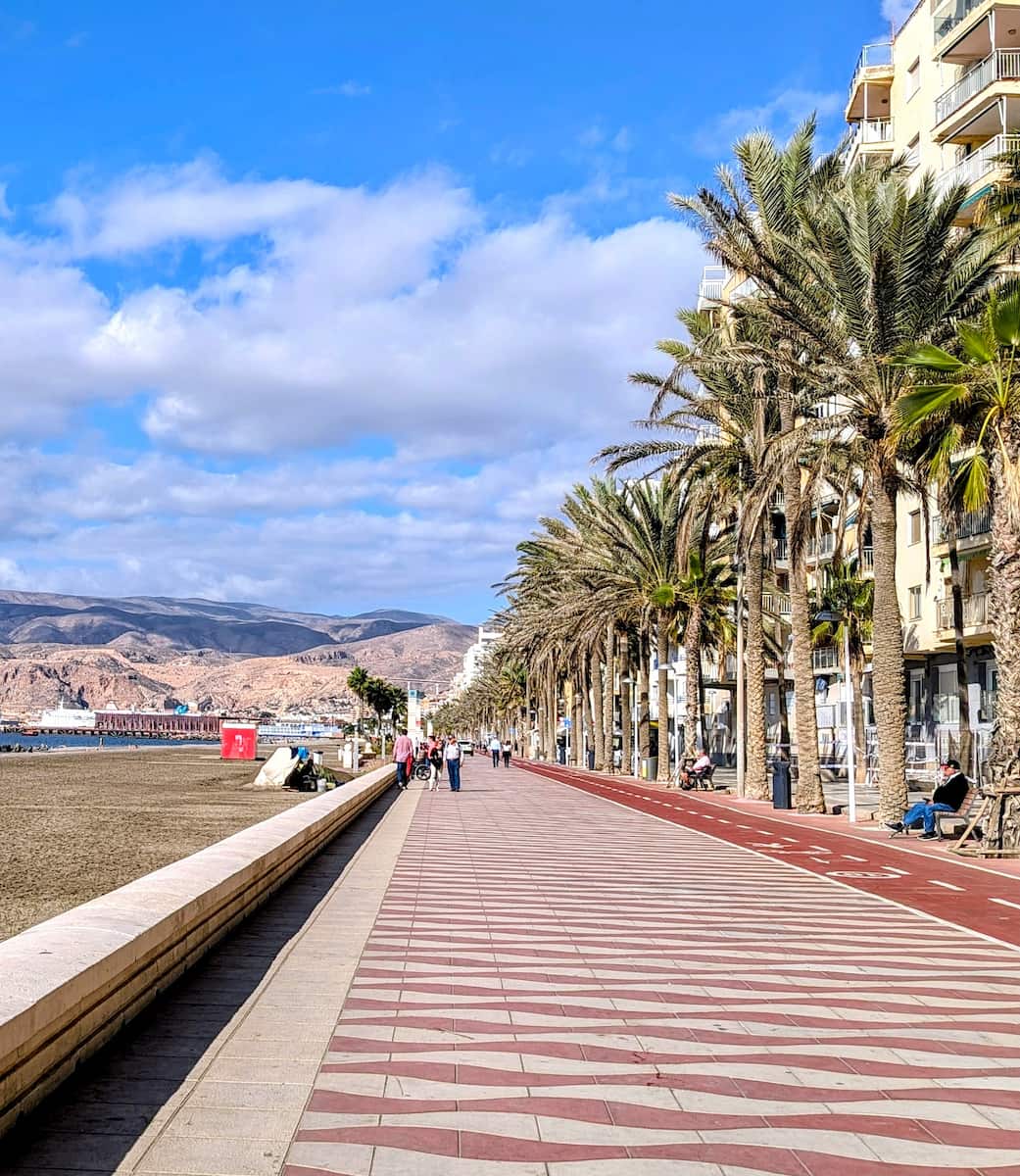 Wonderful Promenade After all that history, I needed some fresh air and sunshine. The Paseo Marítimo stretches about 2km along Almeria’s beaches and offers the perfect place to relax. I spent a delightful afternoon walking along the promenade, stopping occasionally at the many cafes and bars that line the route.