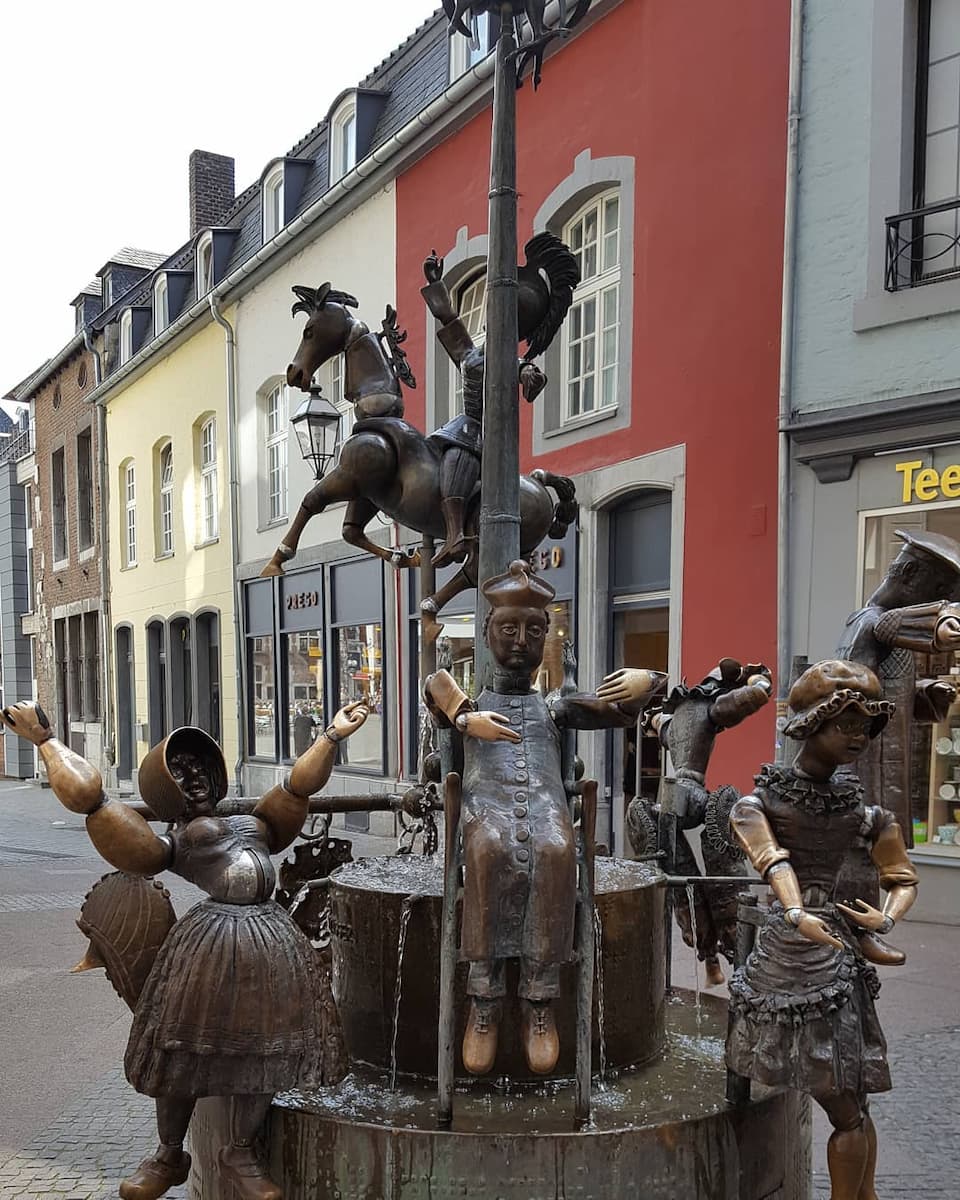 Urban Art. Aachen’s fountains are more than water features – they’re outdoor art galleries. The Puppenbrunnen (Puppet Fountain) made me smile with its moveable bronze figures representing local characters.