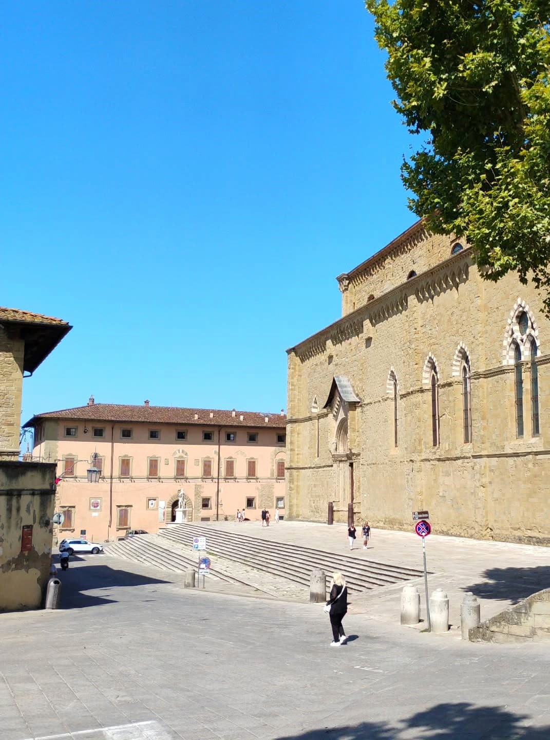 Heart of Arezzo. Standing in the magnificent Piazza Grande feels like stepping onto a medieval stage set. This trapezoid-shaped square, built on a slope during the 13th century, captivated me with its unconventional design and stunning architecture spanning different historical periods. The square transforms completely during the famous Antique Fair, held on the first weekend of every month.