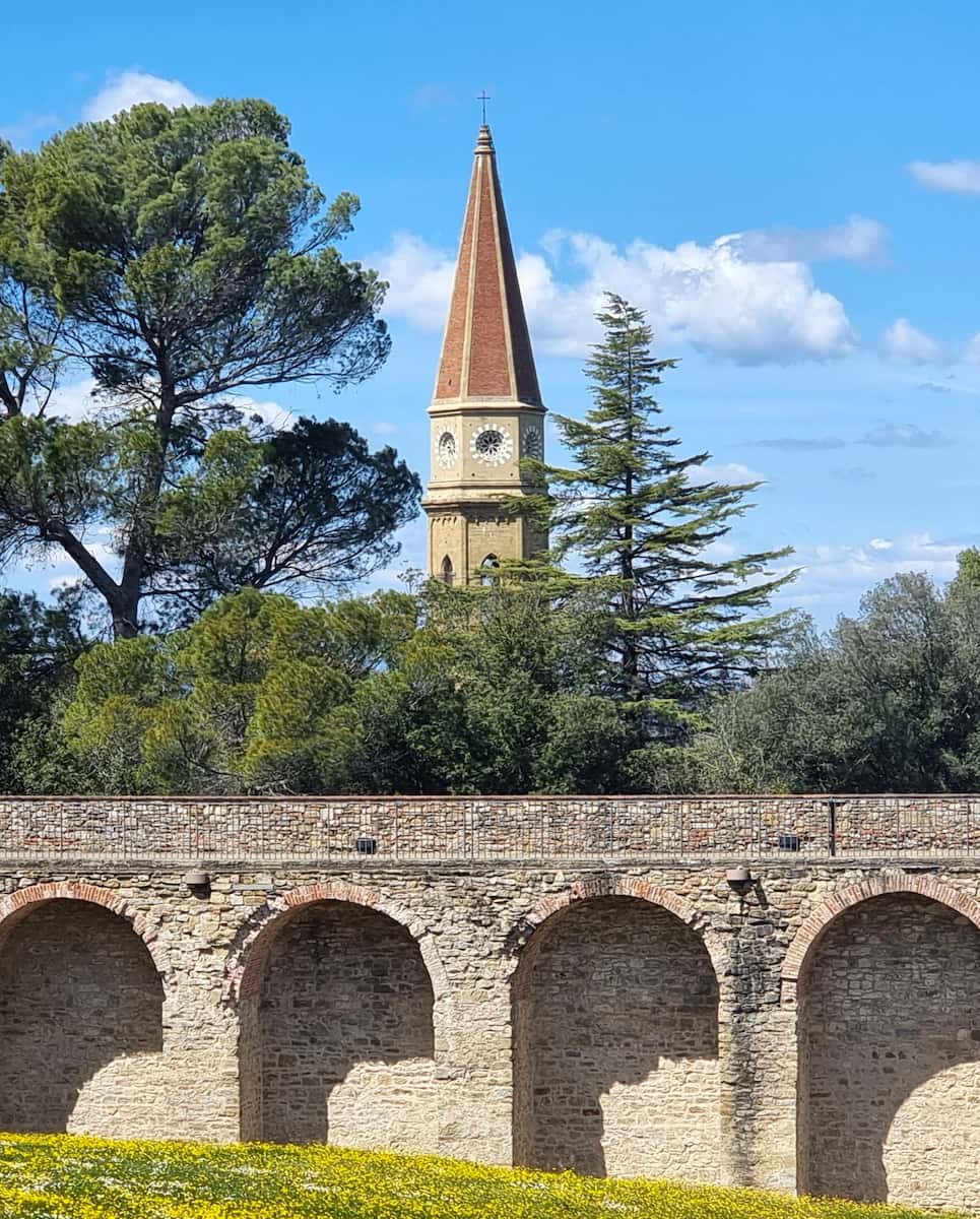 Fortress gardens. Spring transforms the grounds around the Medici Fortress with colorful wildflowers and blossoming trees. I spent a peaceful morning walking the pathways as butterflies flitted between purple wisteria and fragrant herbs growing along the ancient walls.