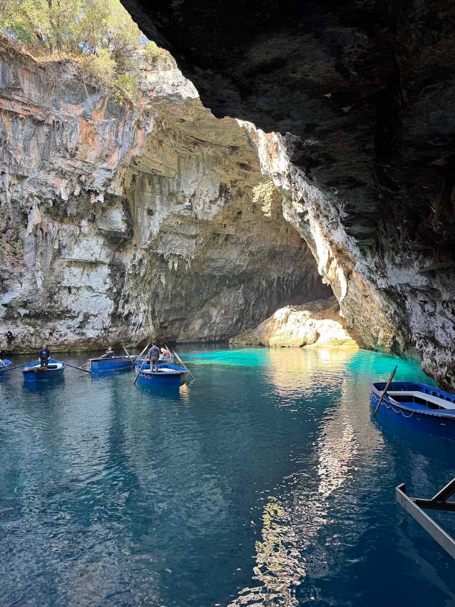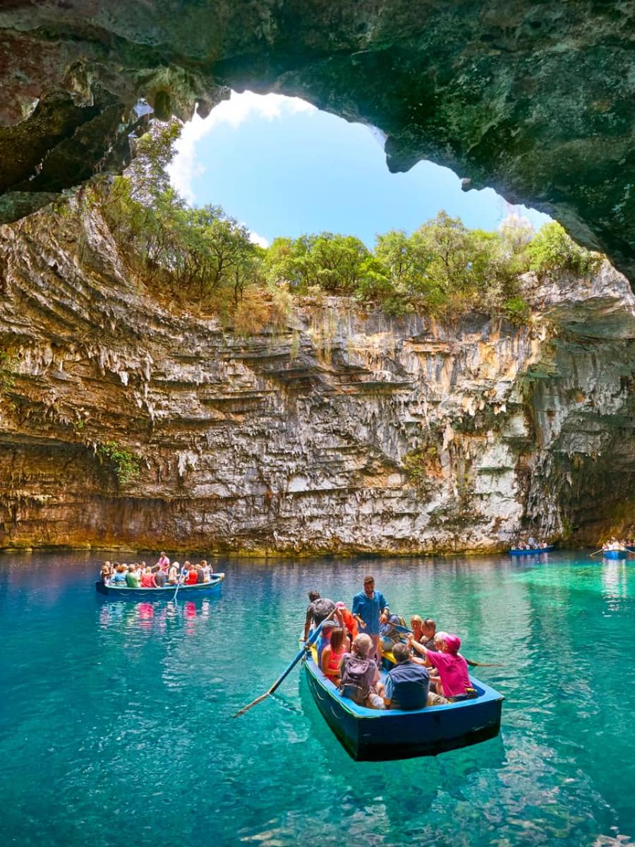 Underground marvel. Located close to Drogarati Cave near Sami, Melissani Lake left me speechless with its ethereal beauty. This underground lake sits inside a cave whose roof collapsed thousands of years ago, creating a natural skylight that illuminates the blue waters below.