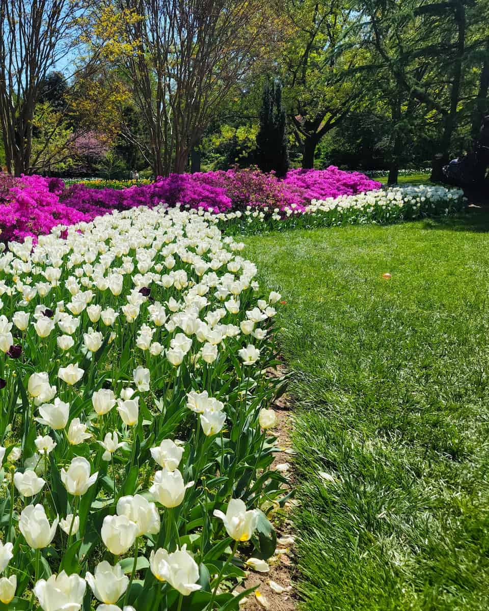 Photo opportunities. Beyond tulips, the gardens feature flowering dogwoods, magnolias, wisteria, and azaleas creating perfect backdrops for photos. I arrived early morning (around 8am) to catch the soft light and avoid crowds. The dappled sunlight through mature trees created magical lighting conditions.