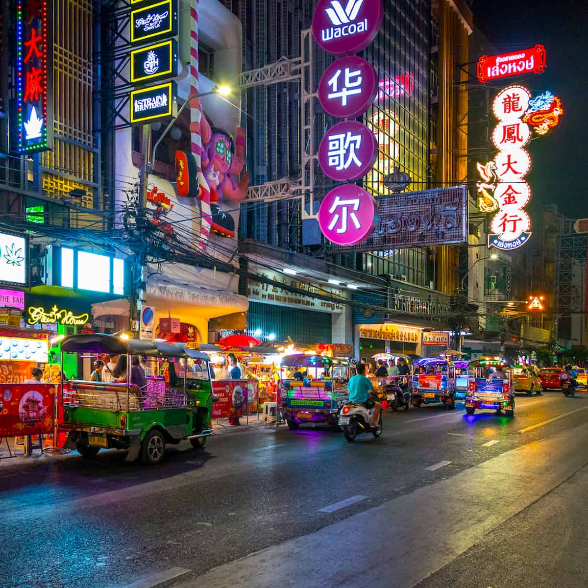 - Tuk-tuk Tour Bangkok by Night – Discover Bangkok’s vibrant nightlife and illuminated landmarks on an authentic tuk-tuk adventure through the city streets.