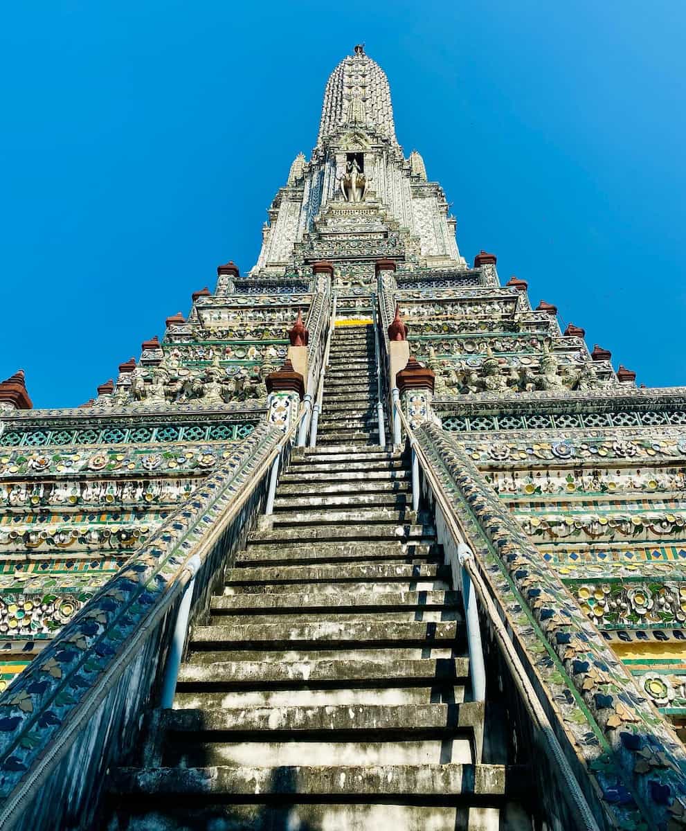 Architectural Wonder. The temple’s four smaller prangs surround the central tower, each adorned with mythical creatures and floral motifs made from broken Chinese porcelain. I discovered these decorative elements were originally ballast from trading ships, transformed into beautiful art by skilled craftsmen. The steep climb requires careful footing, but the effort rewards visitors with unmatched views of the Grand Palace across the river. This perspective helps visitors truly see bangkok from a unique vantage point.