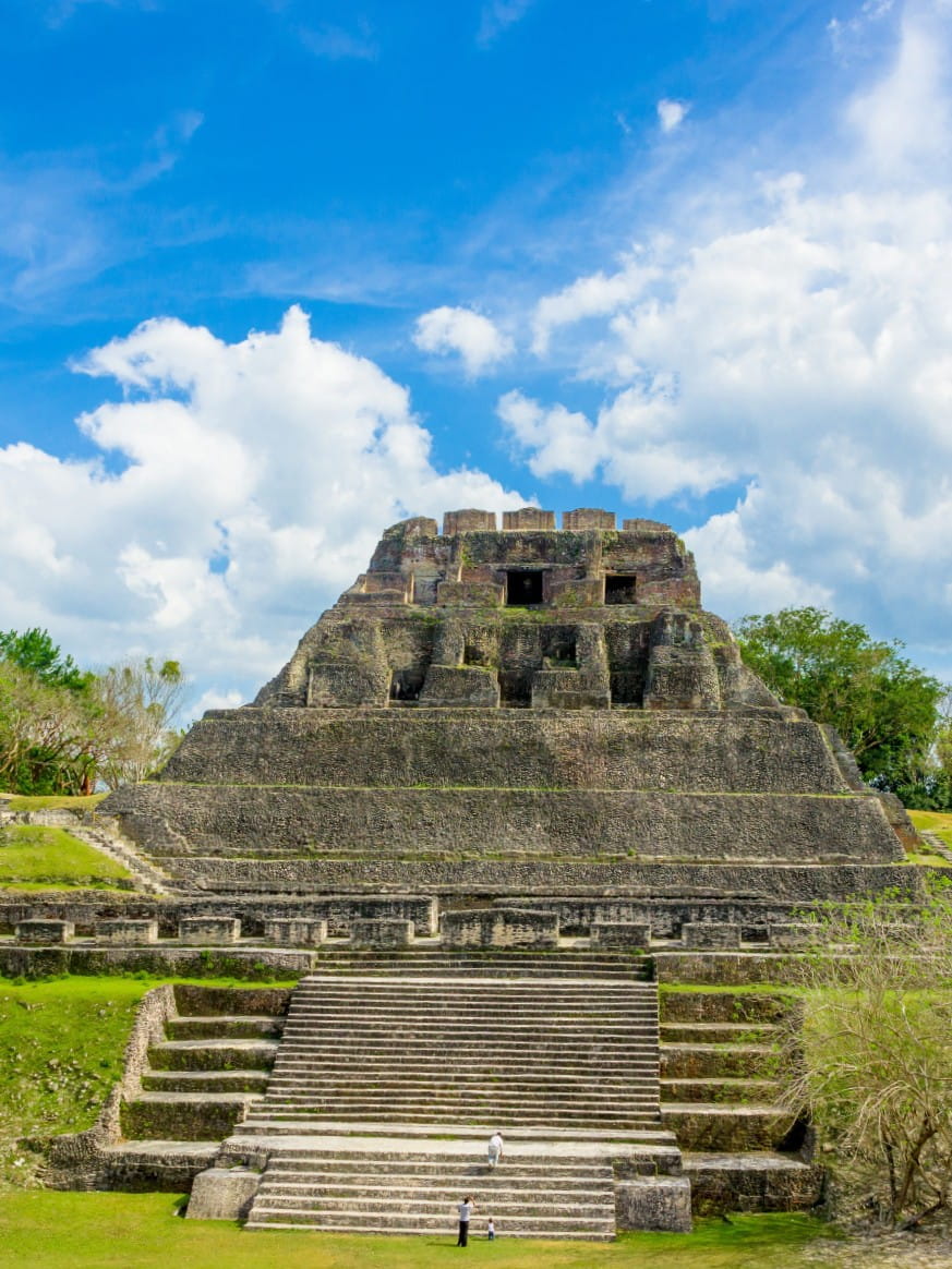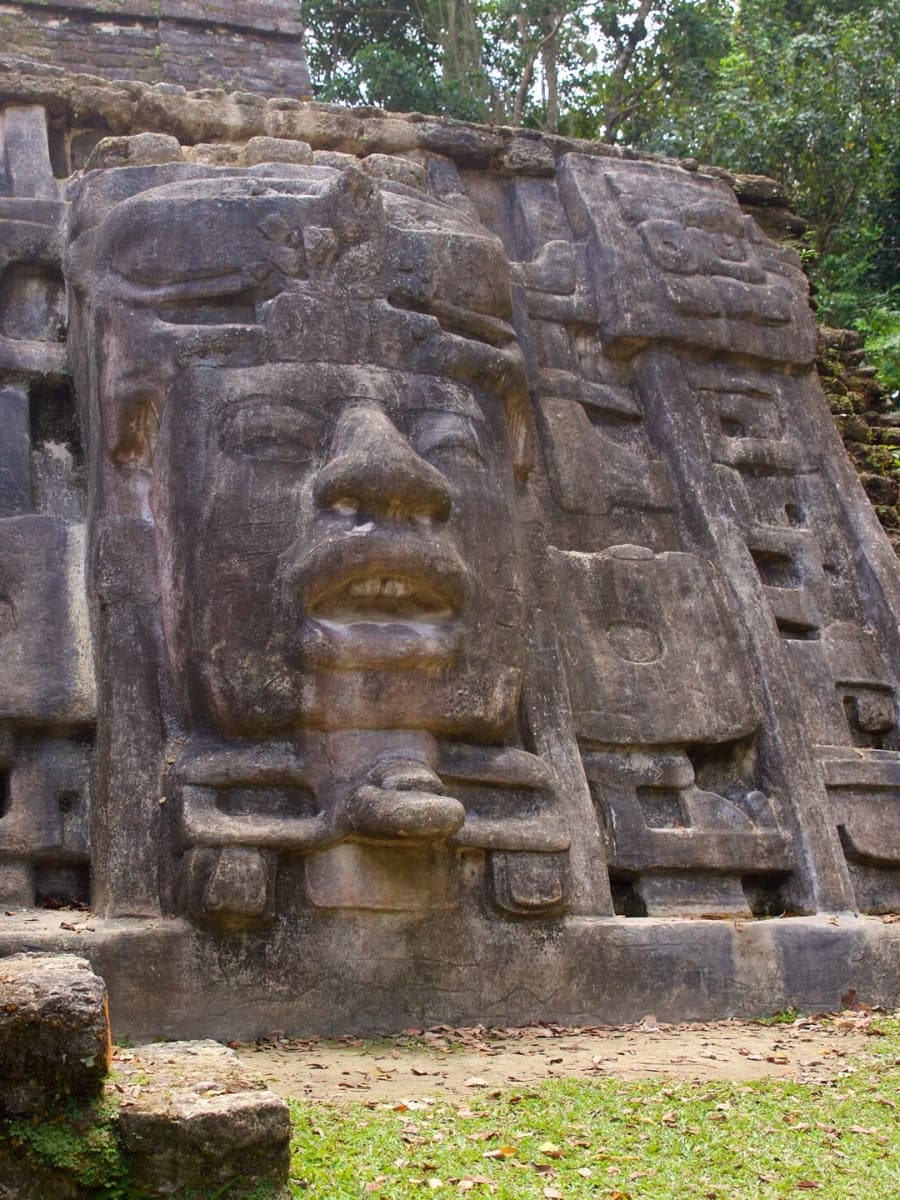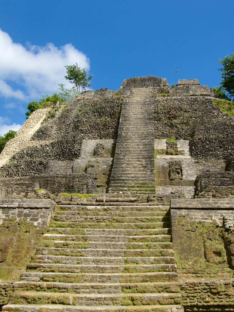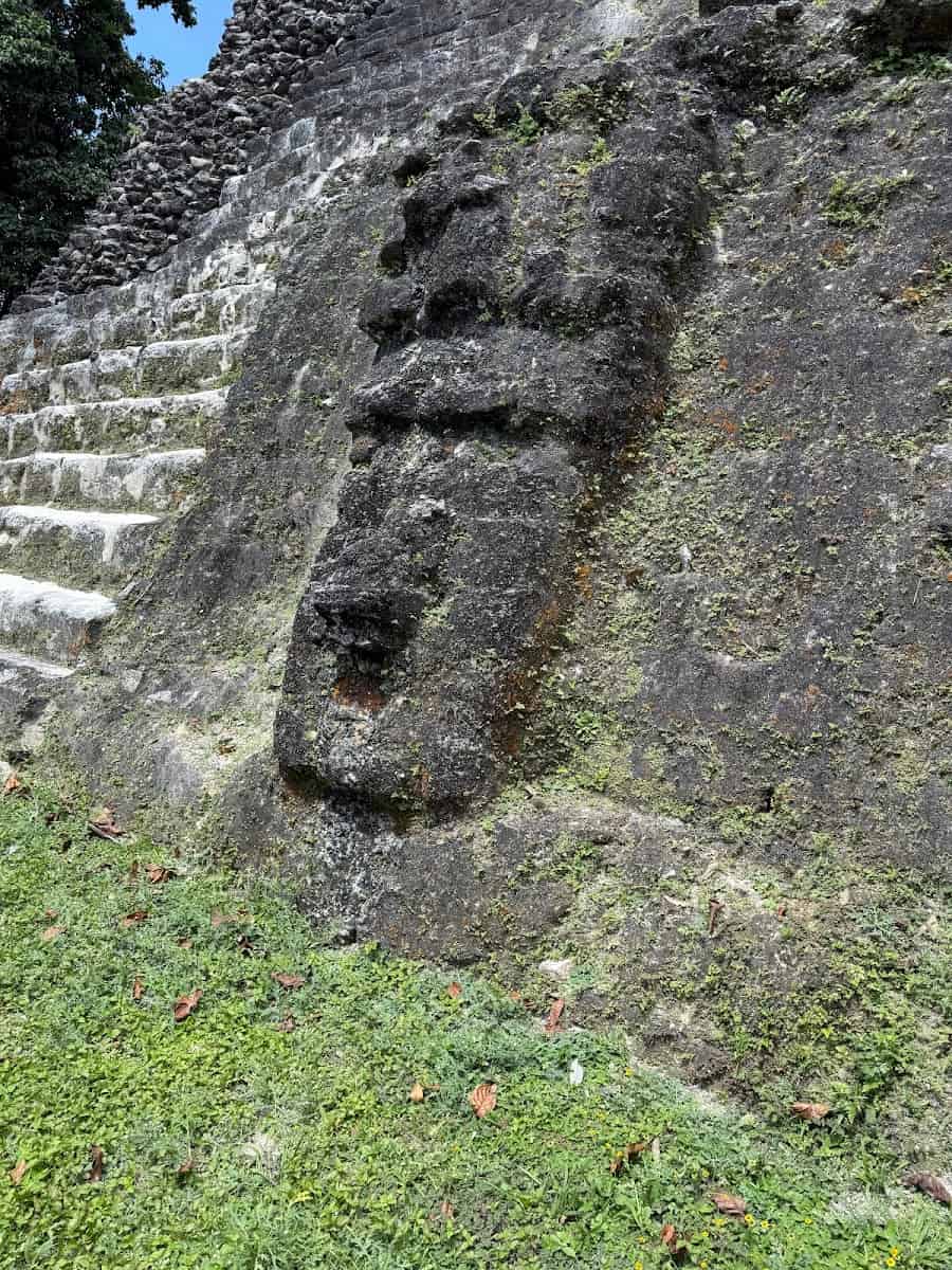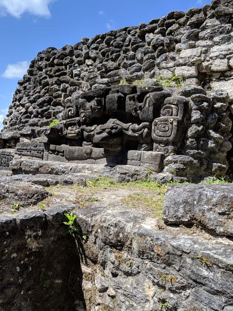 The Temple. The most famous structure is the Temple of the Masonry Altars, also called the Temple of the Sun God. This 54-foot-high temple sits at the heart of the site and is open for climbing. From the top, I enjoyed a panoramic view of the ancient city and the green forest beyond. The temple is famous for the discovery of a jade head representing Kinich Ahau, the Maya sun god — now a national symbol and featured on Belizean currency.