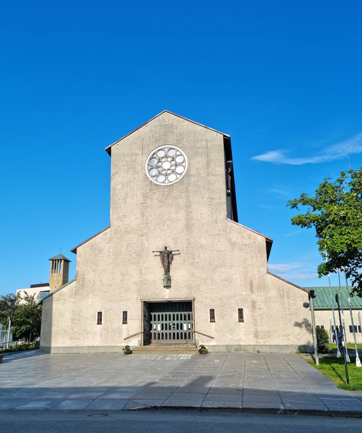 Historical significance. What touched me most was the subtle World War II memorial tucked away inside. The inscription reads: “In memory of those from Bodø. No one named, no one forgotten.” This poignant reminder tells the story of Bodø’s difficult past, as the previous wooden church was destroyed during the bombing that devastated the entire city center. Outside, I took a moment to appreciate Kristoffer Leirdal’s sculpture depicting Petter Dass, before wandering through the surrounding green area that completes this listed cultural heritage site.