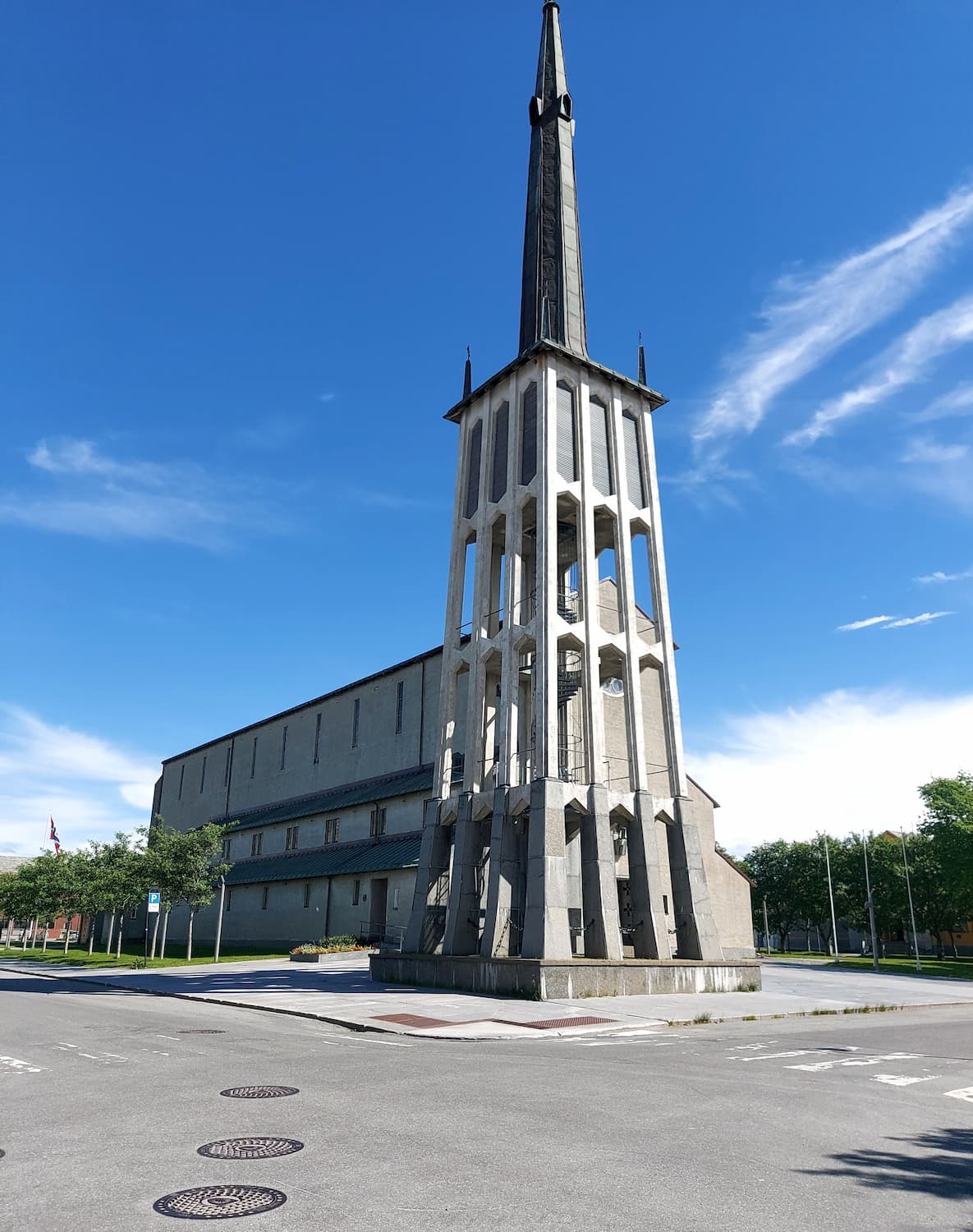 Architectural marvel. Standing tall in the heart of Bodø’s town center, the cathedral immediately caught my eye with its striking concrete basilica design and distinctive 36-meter free-standing clock tower. I spent a peaceful morning exploring this unique church, which sits perfectly positioned on the brink between the steep coastal slope and the upper flat plain about 20 meters above sea level. What makes this cathedral special isn’t ornate gold decoration or ancient stonework, but rather its clean modernist lines and the way northern light filters through its impressive stained glass windows.