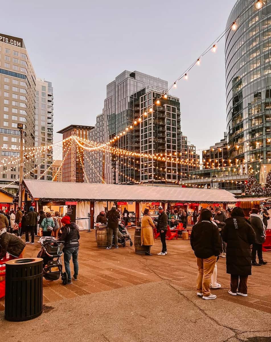 Holiday markets. Boston hosts several festive markets during the season, including the Boston Winter Holiday Market at City Hall Plaza and pop-up markets in the Seaport District. These markets feature local artisans selling handcrafted gifts, seasonal foods, and hot beverages.