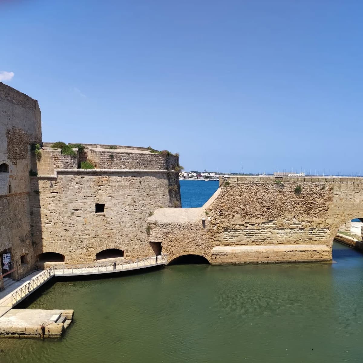 Strategic position. As I explored the fortress, I understood why it was crucial for controlling access to Brindisi’s port. Its position allowed defenders to monitor all vessels entering or leaving the harbor, protecting this vital Mediterranean trading hub.