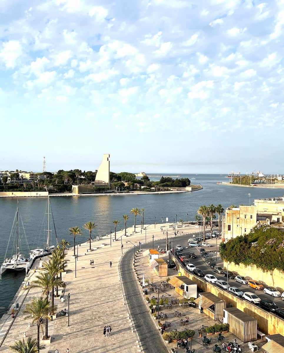 Panoramic views. I climbed to the observation deck at the top (€3/$3.30 entrance fee) and was rewarded with spectacular 360-degree views of Brindisi, its port, and the surrounding countryside. The Adriatic Sea stretched endlessly before me.