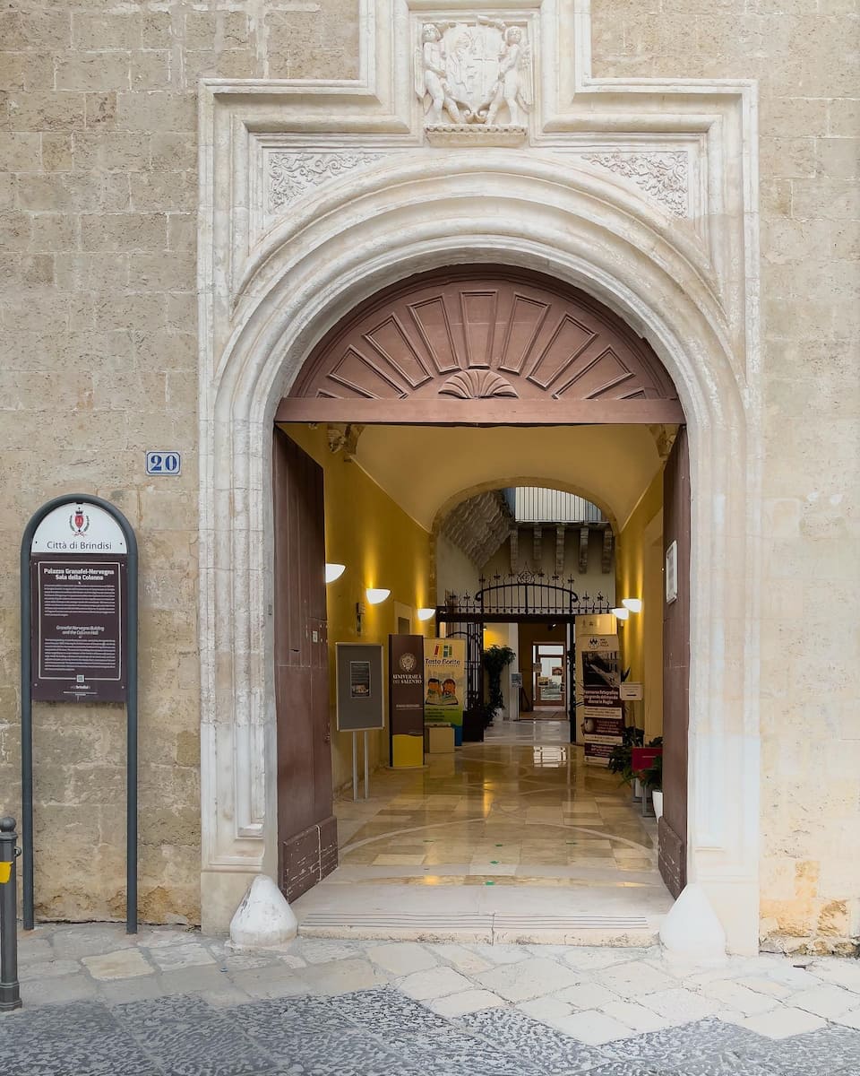 Architectural highlights. I admired the ornate stone balconies, grand staircase, and the internal courtyard with its classical proportions. The building exemplifies the wealth and artistic sensibilities of Brindisi’s noble families during the Renaissance.
