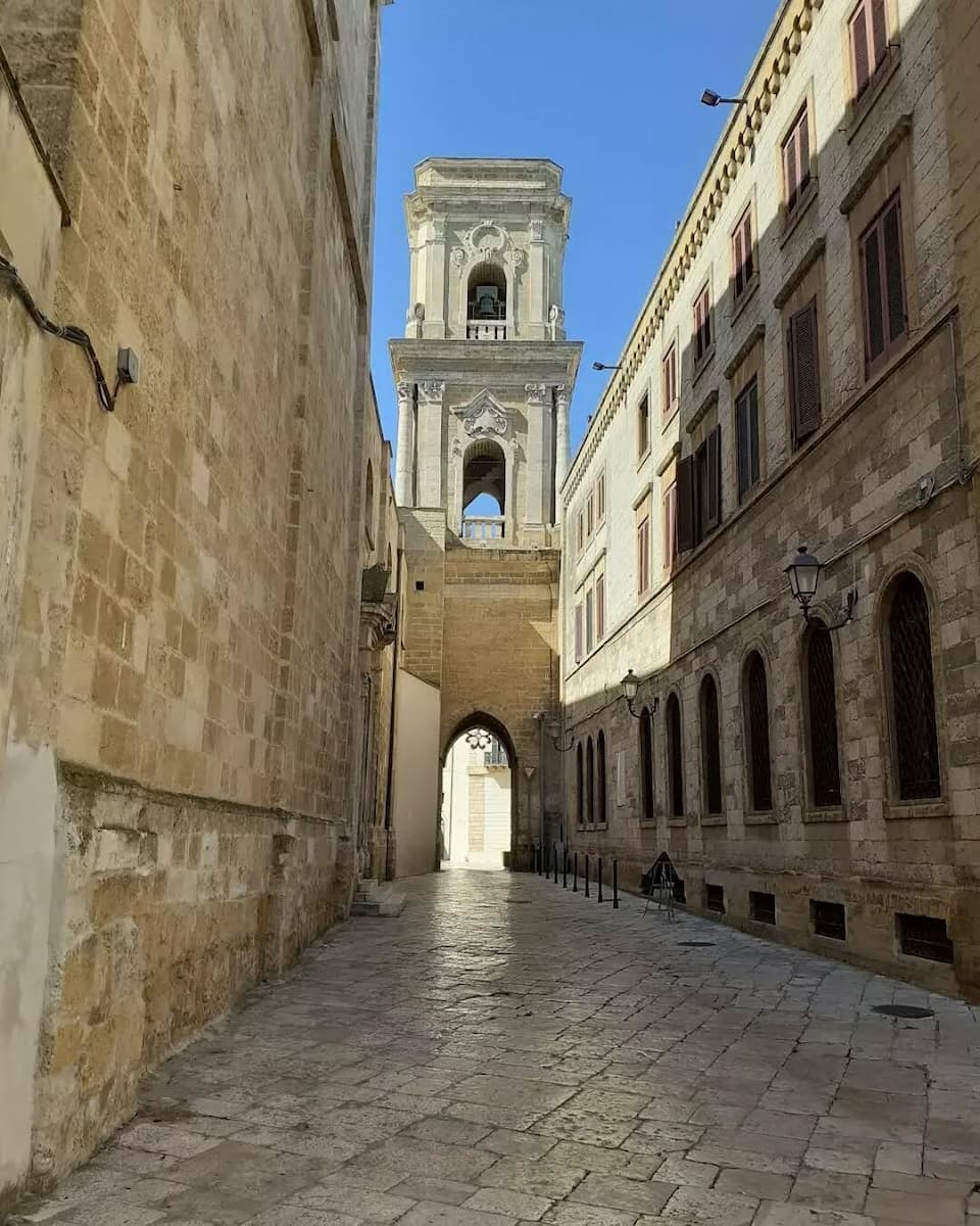 St. Oronzo Square. The heart of the city, this square features a statue of St. Oronzo atop a Roman column (reportedly donated by Brindisi), erected between 1666 and 1683 to thank the saint for his intercession during the plague. The square is surrounded by historic buildings including the Palazzo del Seggio (built in 1592) and contains a portion of a Roman amphitheater that creates a fascinating contrast between antiquity and the present day.