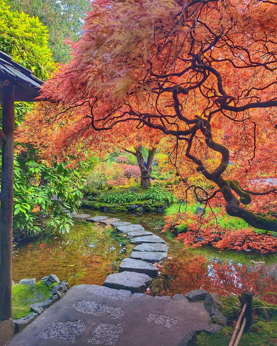 - Japanese Garden: tranquil bridges, lush greenery