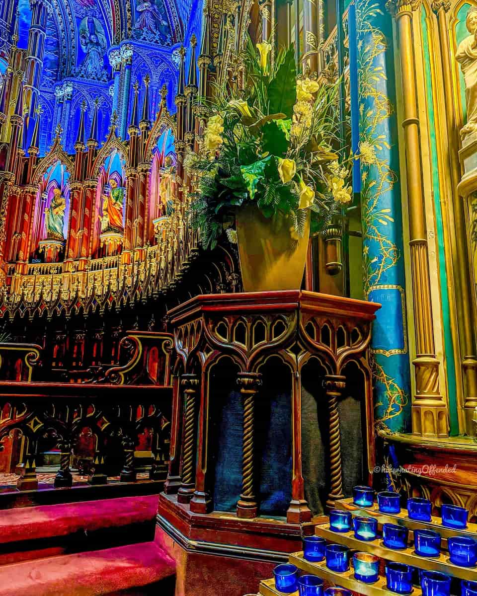 First Impressions. Stepping into Montreal’s Notre-Dame Basilica, I was instantly swept away by the sheer scale and artistry of this Gothic Revival masterpiece. The blue vaulted ceiling, speckled with golden stars, seemed to stretch into infinity. Sunlight filtering through the stained-glass windows painted stories from the city’s past across the stone walls. The atmosphere was both grand and peaceful, with the gentle hum of visitors and the occasional echo of organ music from the famous 7,000-pipe Casavant organ.