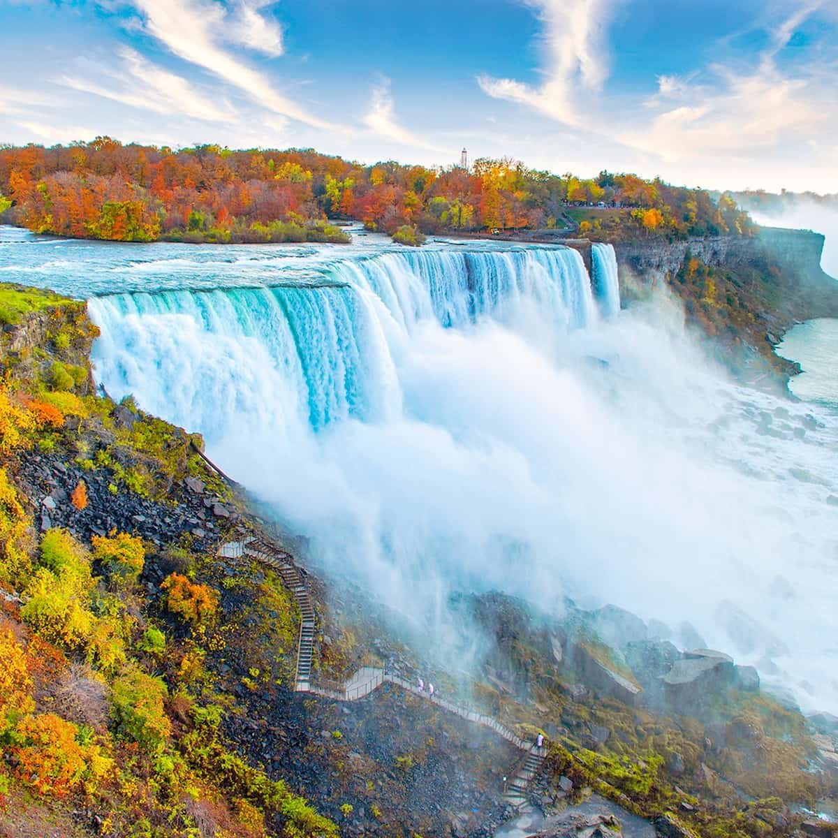 - Niagara Falls in 1 Day: Tour of American and Canadian Sides – See both sides of Niagara Falls in one day with a guided tour including the Maid of the Mist boat ride (in season), Journey Behind the Falls, Cave of the Winds, Skylon Tower, and more. All attraction fees and hotel pickup in the Niagara area are included — just bring your passport for the border crossing!