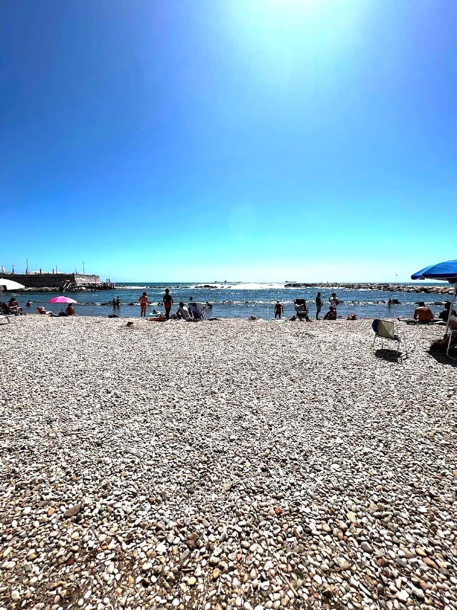 Practical Tips. I recommend bringing water shoes for the pebbly areas. The best swimming spots are marked with blue flags, indicating excellent water quality. Most beaches offer free parking, but arrive early during peak season to secure a spot.