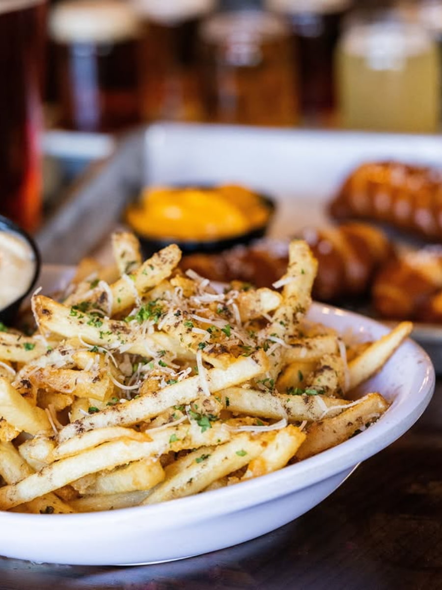 Menu and Prices. The food menu is just as impressive, with wood-fired pizzas, burgers, and comfort food classics. I tried the Prosciutto and Pear pizza and the Bavarian Pretzels with pub cheese—both were excellent. The portions are generous, and there are vegetarian and gluten-free options available. Here’s a table with typical prices: