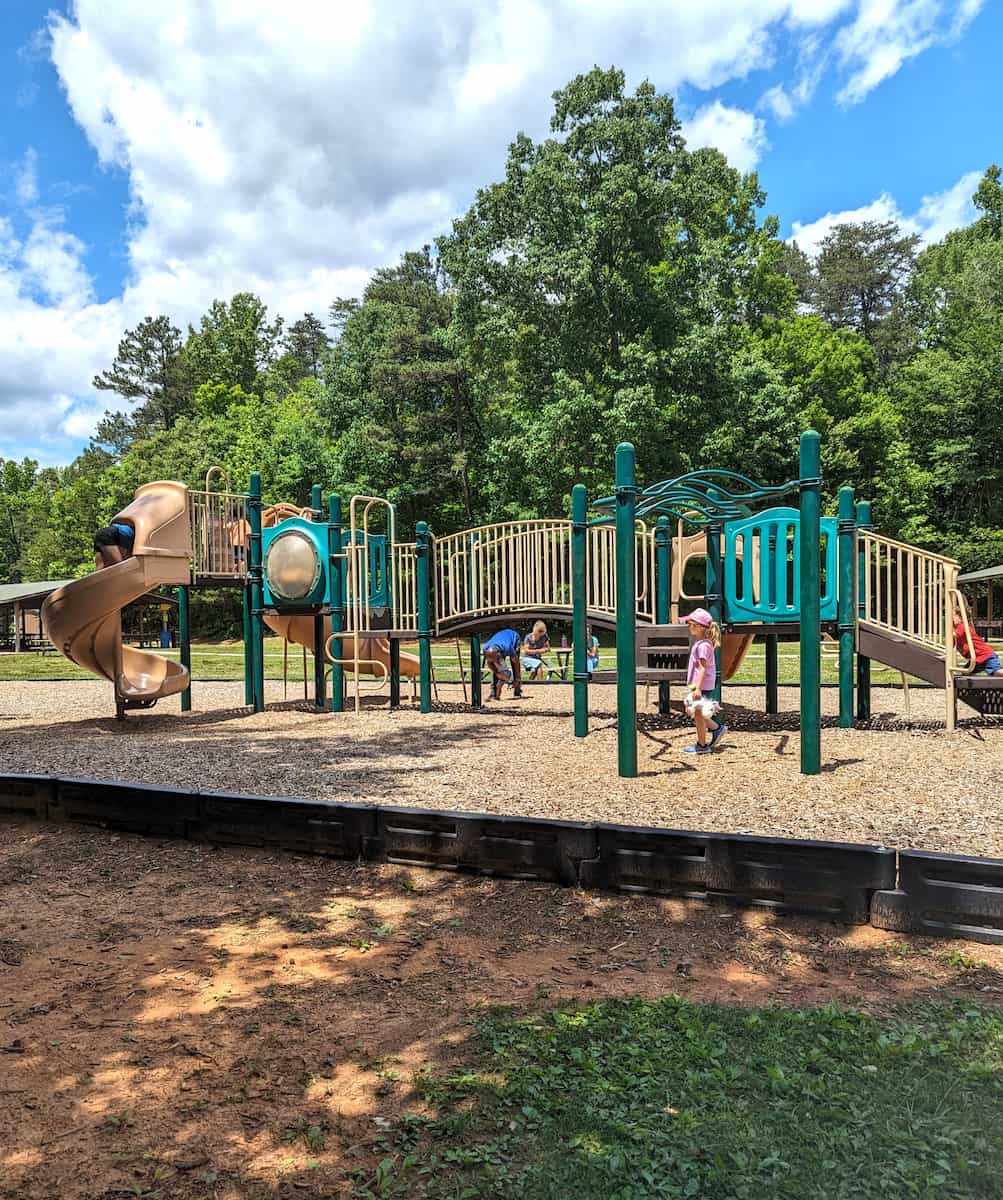 Facilities and Amenities. Bur-Mil Park is designed for families and groups. Youâll find seven picnic shelters (free if not reserved), a large playground, and two fishing ponds stocked with bass and catfish. The Wildlife Education Center, located between the ponds, offers educational displays and even loaner fishing rods for kids under 15. For a quick bite, there are snack concessions by the pool, but for a proper meal, I usually head to one of the restaurants on Battleground Avenue just a few minutes away.