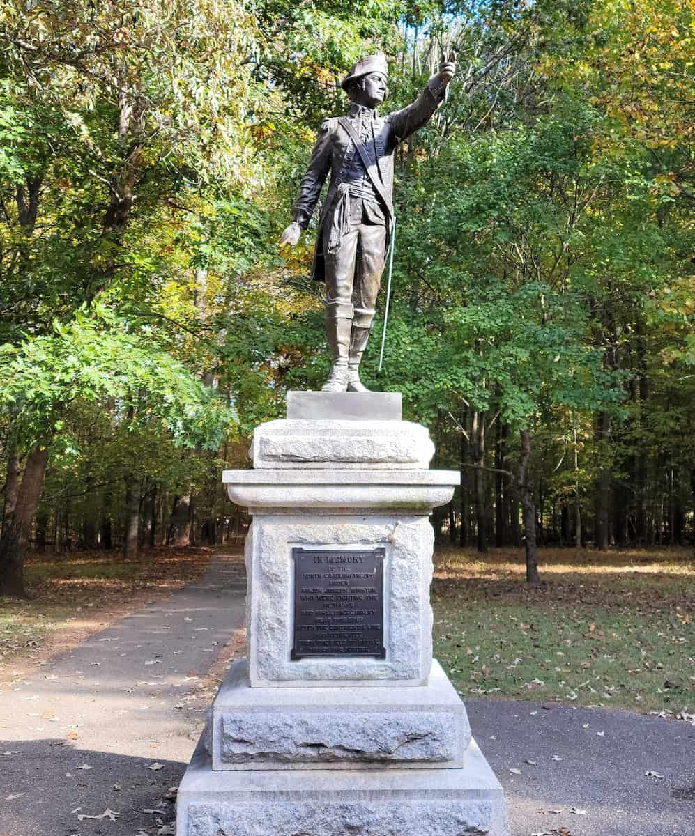 Walking and Touring. Exploring the park is easy thanks to the 2.25-mile Tour Road. You can drive, walk, or bike. I chose to walk, stopping at several of the 28 monuments along the way. Each tells a different tale, from the American Cavalry Obelisk to the Nathaniel Greene statue. For those who want extra details, thereâs a free self-guided audio tourâjust call the number on the signs as you go.