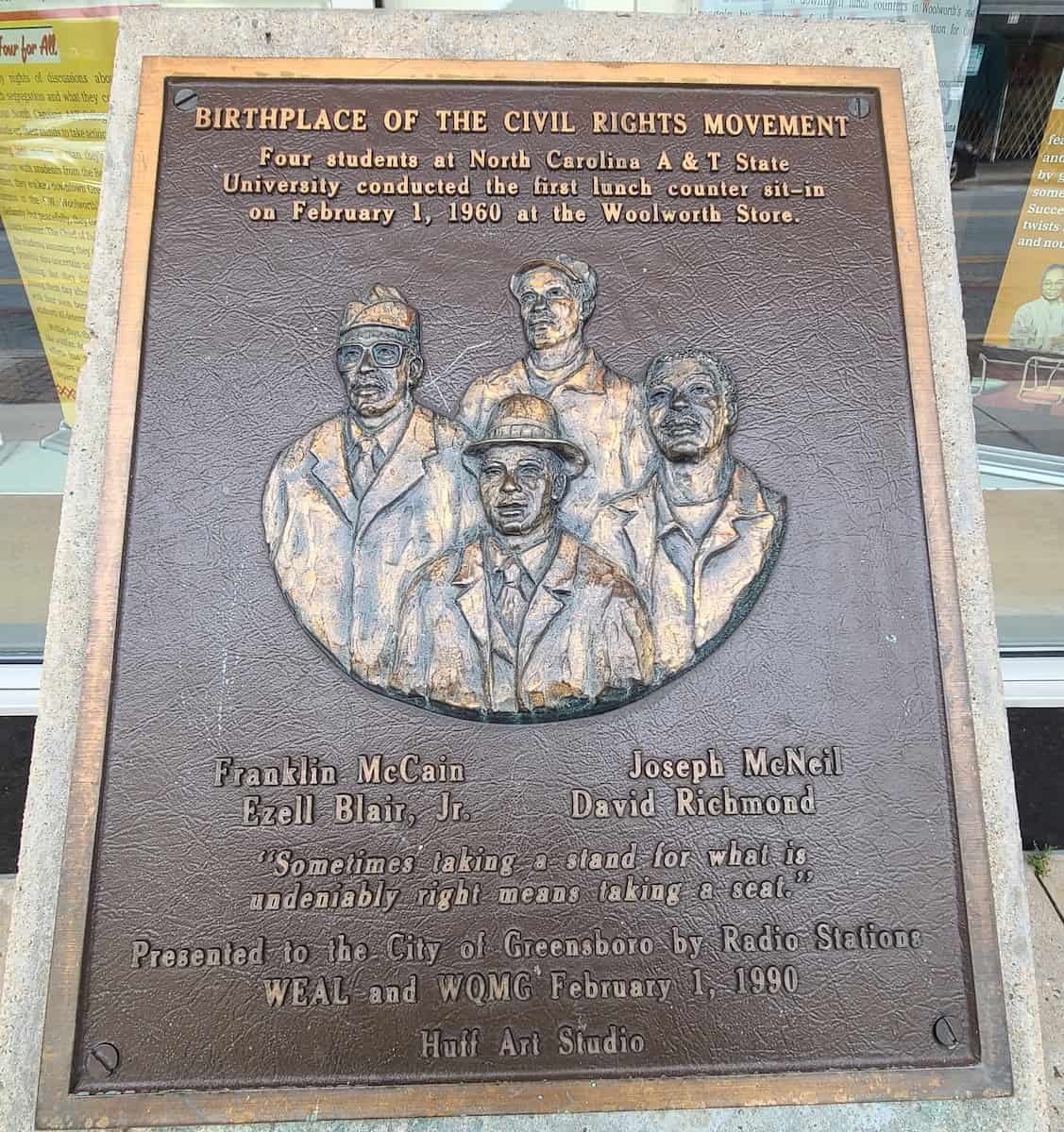 A Landmark of Change. The International Civil Rights Center & Museum, located at 134 South Elm Street, stands in the historic F.W. Woolworth building. Walking in, I was struck by the preserved lunch counterâa powerful symbol of the sit-ins led by four North Carolina A&T students. The original stools and counter remain, connecting visitors directly to the moment when these young men challenged segregation with peaceful protest. The museumâs design blends history and modern storytelling, making every room feel both solemn and alive.