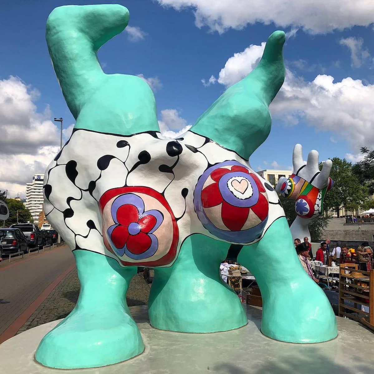 Location Highlights. Standing proudly along the Leine River near Marstallbrücke, the Nanas create a perfect backdrop for Germany’s oldest flea market, which takes place every Saturday.