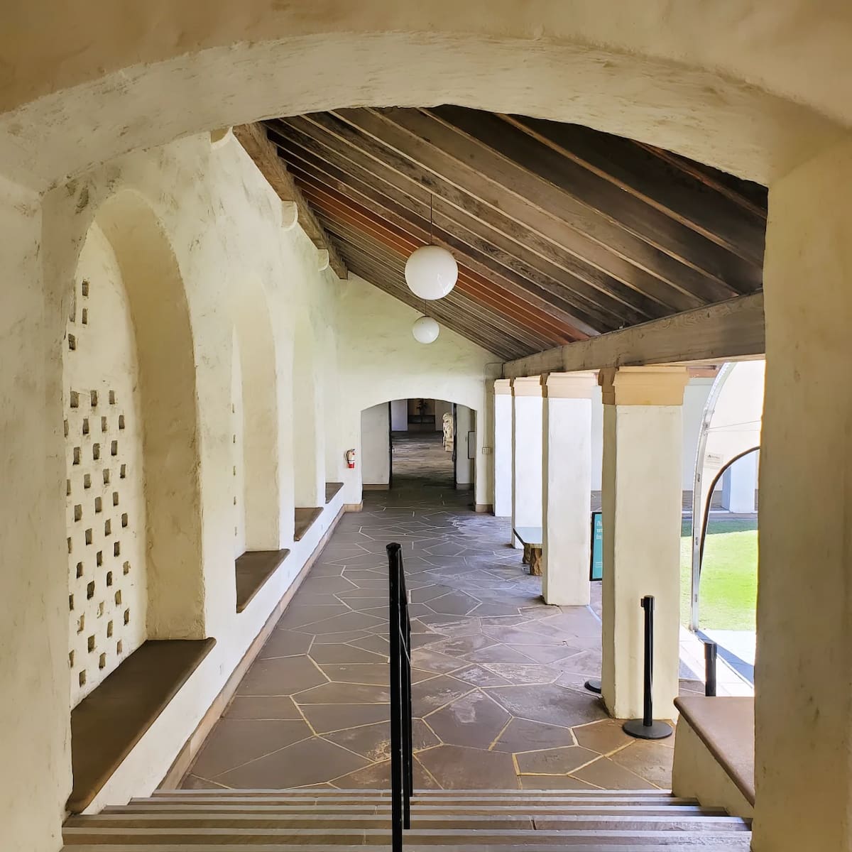 Islamic artistry. Hidden behind unassuming walls near Diamond Head lies Shangri La, tobacco heiress Doris Duke’s stunning seaside estate turned museum of Islamic art. The moment I stepped through the entry courtyard with its intricate tile work and carved wooden doors, I felt transported from Hawaii to Morocco. Duke spent decades collecting over 4,500 pieces of Islamic art from Spain, Morocco, Egypt, Syria, Iran, and India. The living room features a soaring carved wooden ceiling from Morocco, while 13th-century mihrab prayer niches adorn the walls alongside contemporary Islamic artworks.