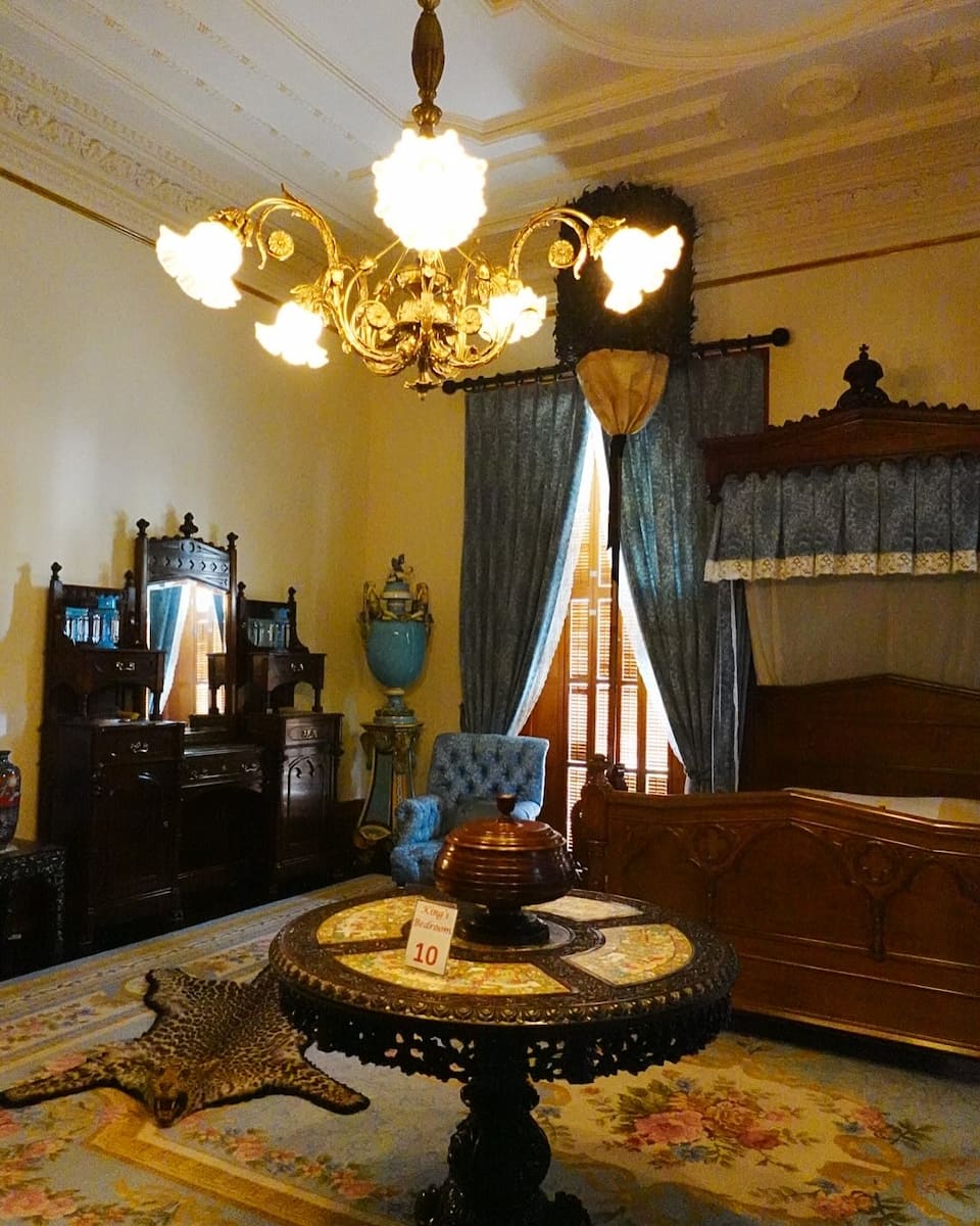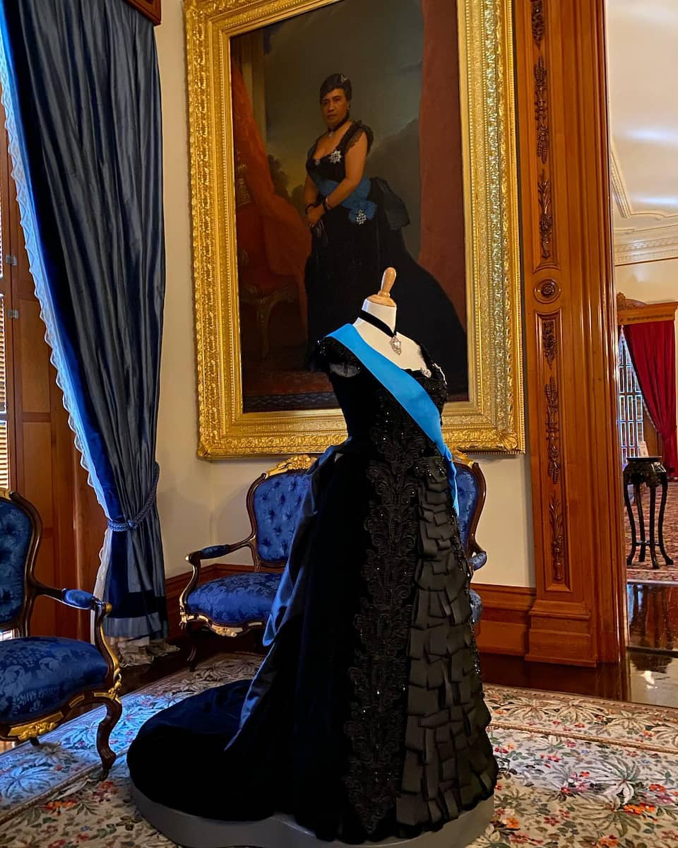 Royal imprisonment. The most moving room in the palace was Queen Liliuokalani’s bedroom, where she was imprisoned for eight months after the overthrow of the Hawaiian monarchy. Our guide showed us the quilt the queen made during her confinement, with embroidered messages documenting her experience. The queen composed over 200 songs during her lifetime, including the famous “Aloha Oe,” which played softly through the palace speakers as we toured her personal chambers.