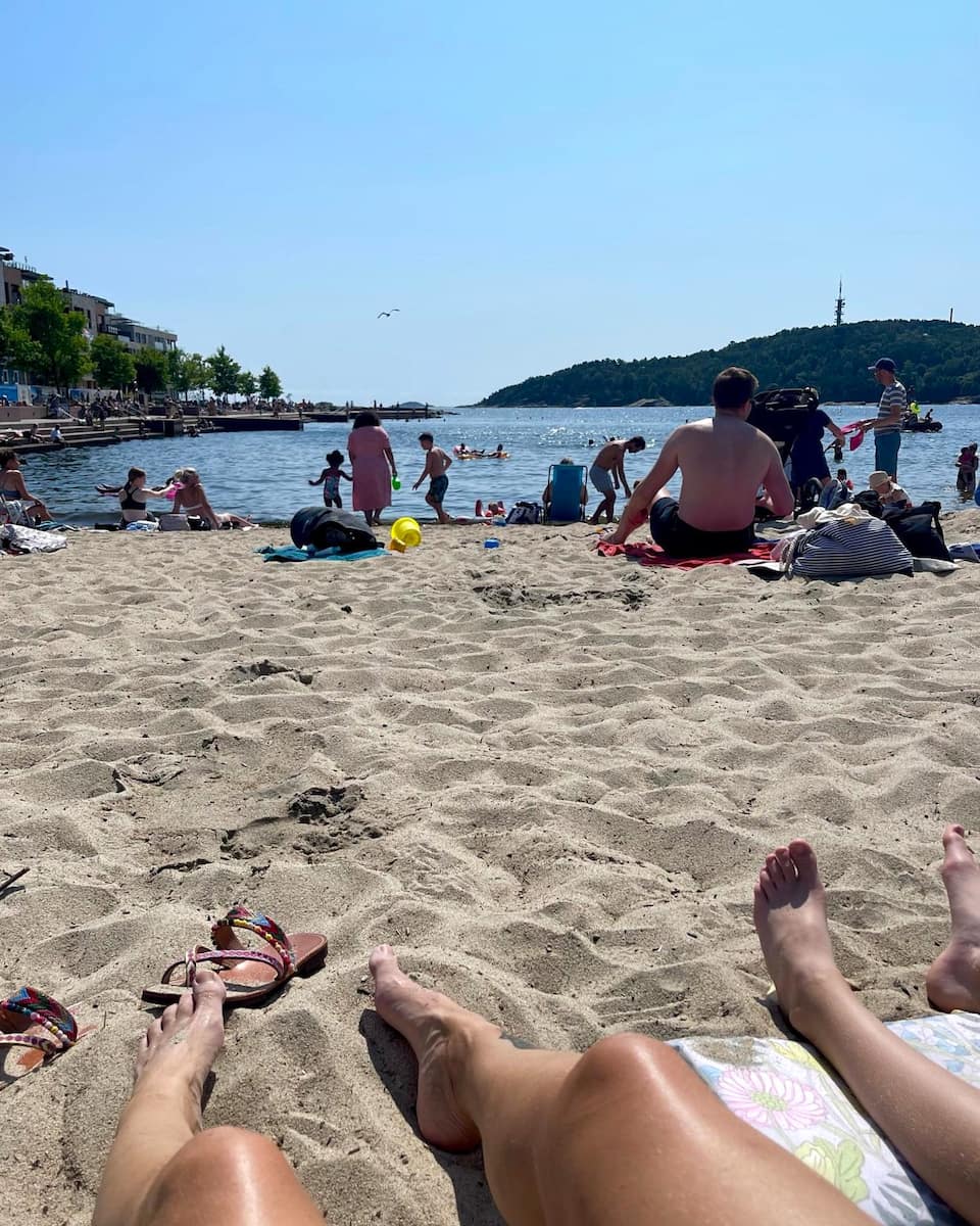 Water activities. I rented a stand-up paddleboard from the beachside kiosk (200 NOK/~$19 per hour) and explored the coastline from a new perspective. The protected swimming area is perfect for families, with gentle waves and lifeguards on duty during summer months.