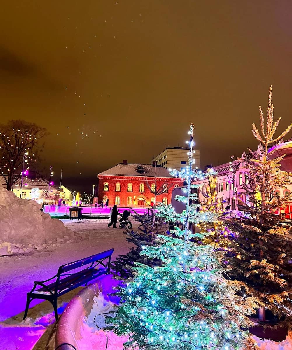 Ice adventures. Right next to the market sits the popular Kompis ice rink, where I watched families glide across the ice against the backdrop of the cathedral. Skate rentals are available for 75 NOK (~$7.20) for children and 120 NOK (~$11.50) for adults. The rink’s special lighting creates a magical atmosphere for evening skating – perfect for working off those holiday treats!