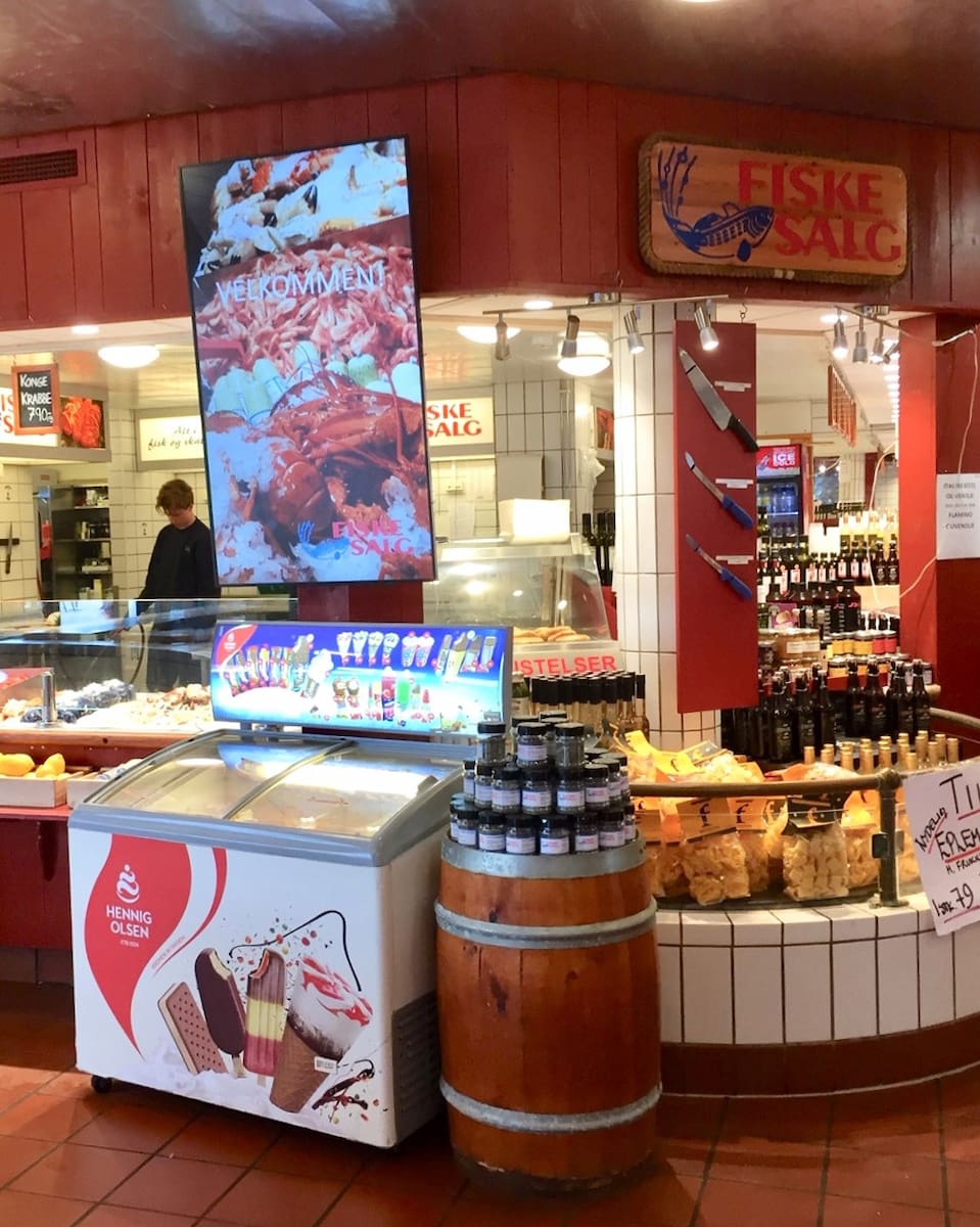 Market browsing. Beyond restaurants, the indoor fish market offers everything from smoked salmon to live lobsters. Prices are reasonable compared to Oslo – I bought 200g of fresh shrimp for just 65 NOK (~$6) and enjoyed them on a nearby bench watching boats come and go.
