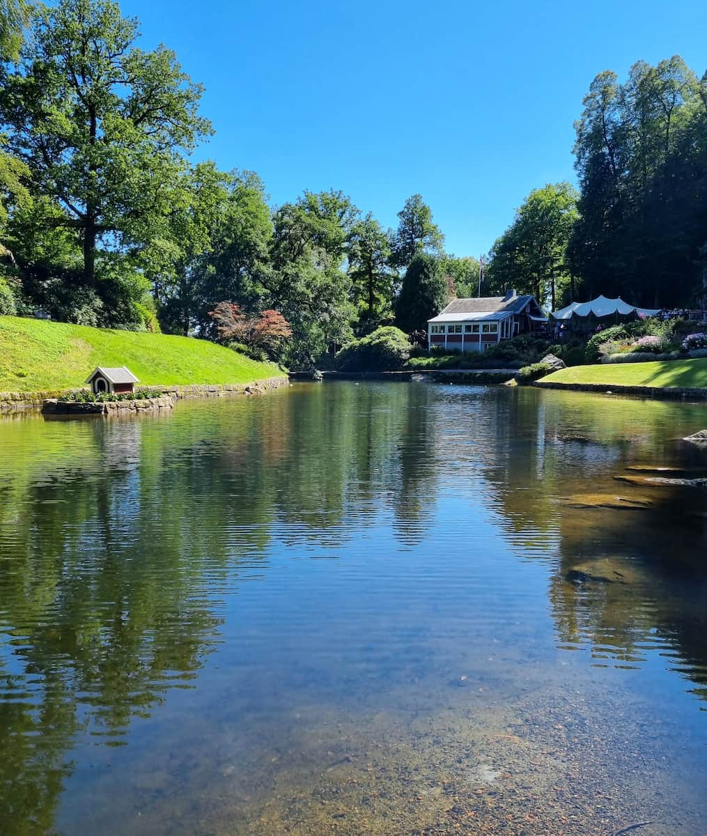 Autumn colors. According to my local guide, Ravnedalen is particularly stunning during autumn when the surrounding trees burst into fiery reds and golds reflected in the lake’s surface. The park remains accessible year-round, though the café operates with reduced hours outside summer months.