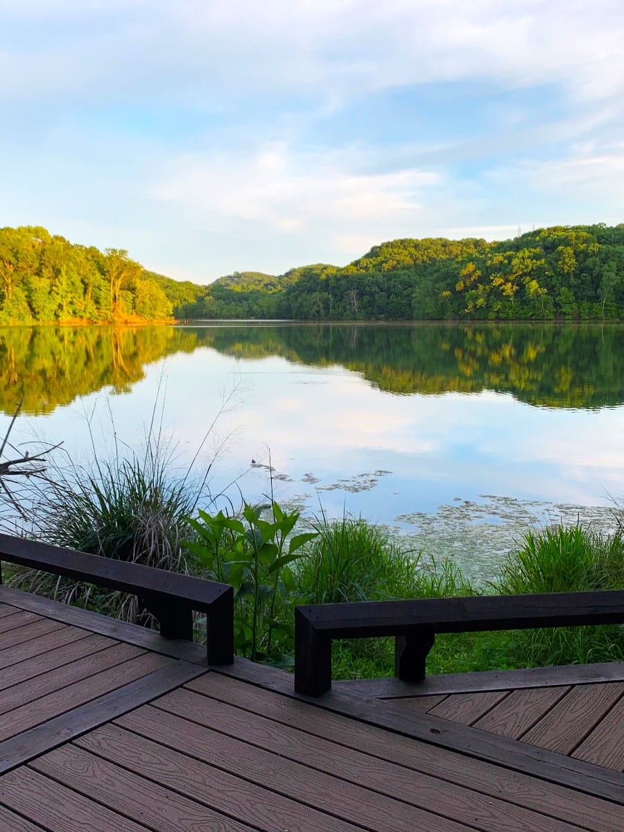 Wildlife spotting. Cooler weather brings out deer, turkeys, and migrating birds. I brought binoculars and spotted several species along the lake. Both parks have observation decks for birdwatching.