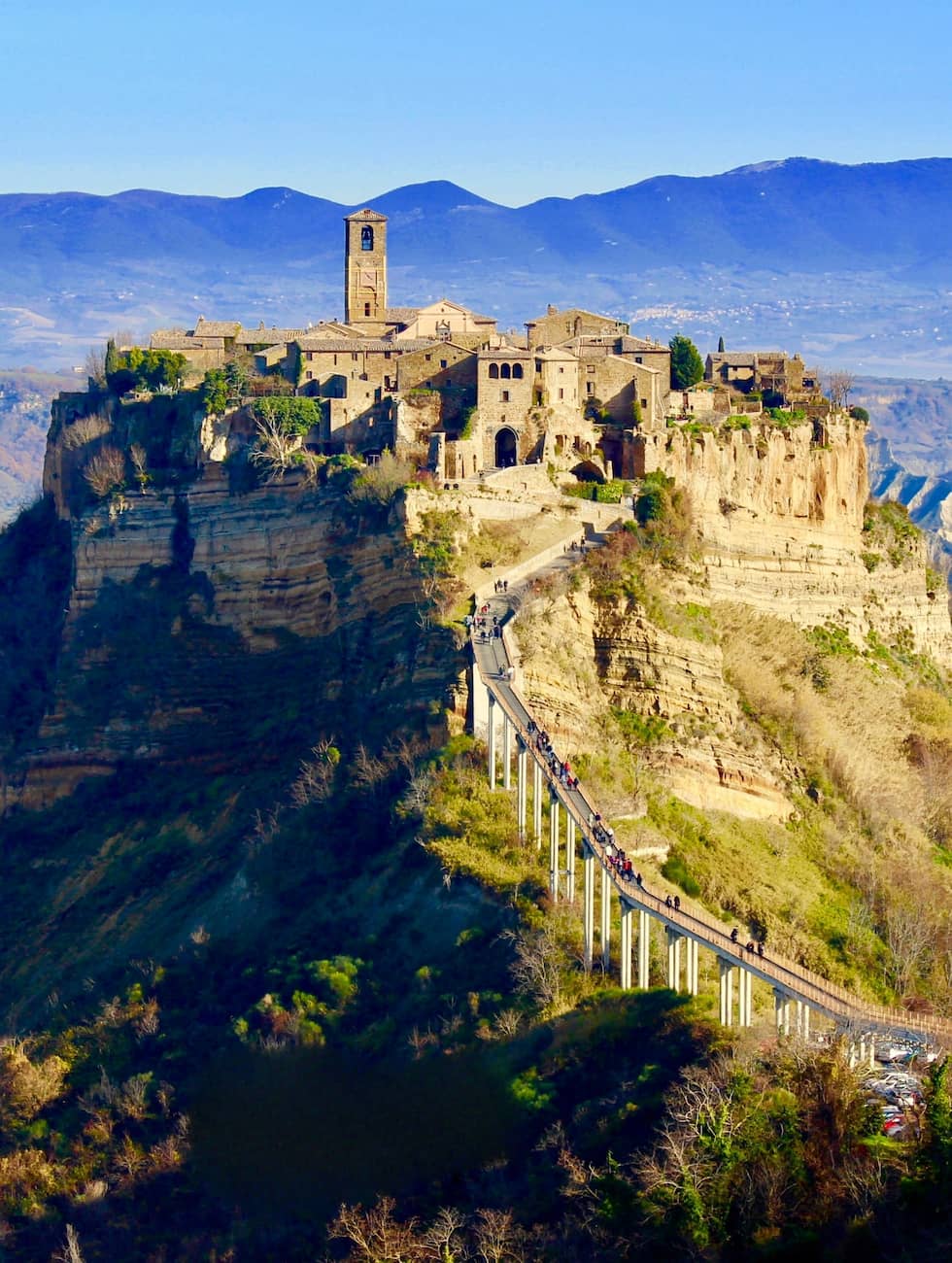 Practical tips. The town has only 11 permanent residents but receives many visitors. Arrive early to avoid crowds, especially in summer. The bridge requires a moderate uphill walk, so wear comfortable shoes. Entry to Civita costs €5, and most attractions are open daily from 9:00-20:00.