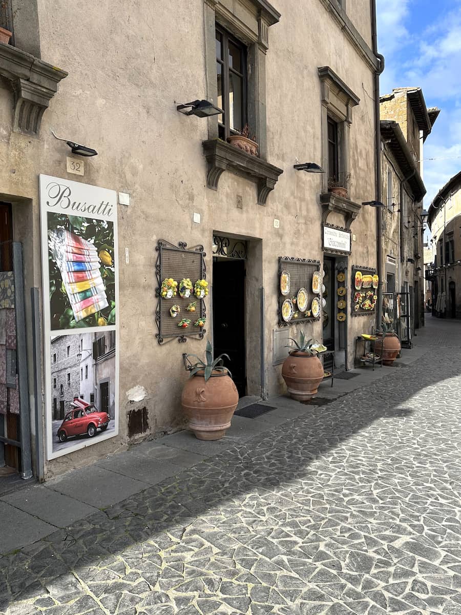 Artisan windows. Window shopping along Via del Duomo and the smaller side streets provides a free glimpse into Orvieto’s artisanal traditions. Ceramics, woodwork, and textiles are displayed in shops where you can often see craftspeople at work without obligation to purchase.