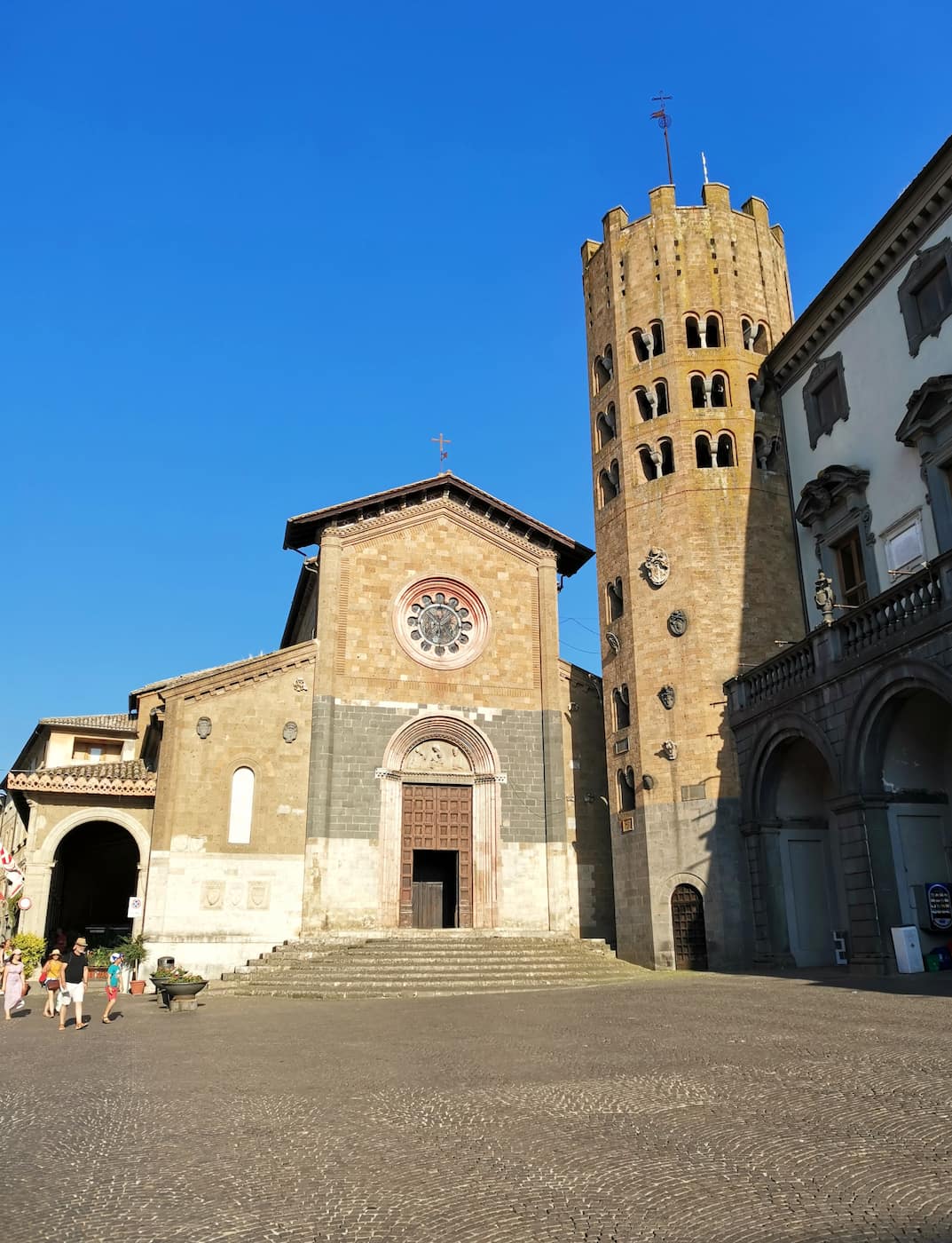 Architectural highlights. The square is framed by elegant buildings including the 12th-century Palazzo Comunale with its clock tower and the Church of Sant’Andrea with its distinctive 12-sided tower. The medieval well at the center dates back to the 13th century.
