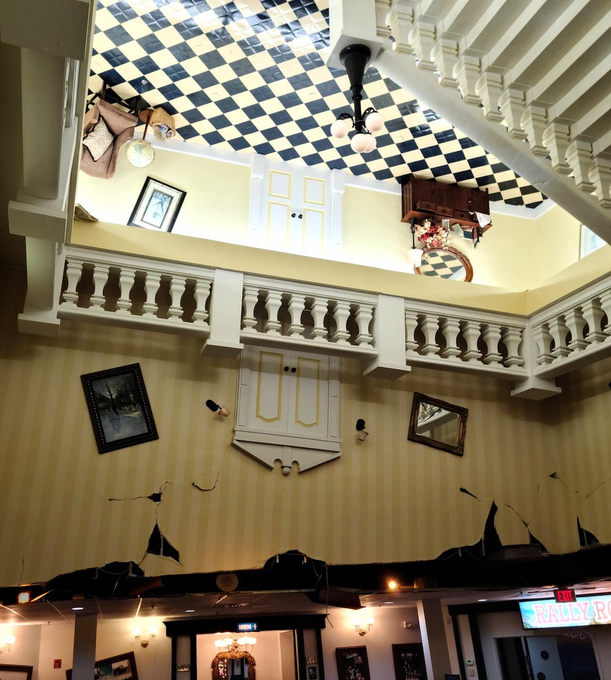 - Standing on sloping decks that simulate the ship’s sinking