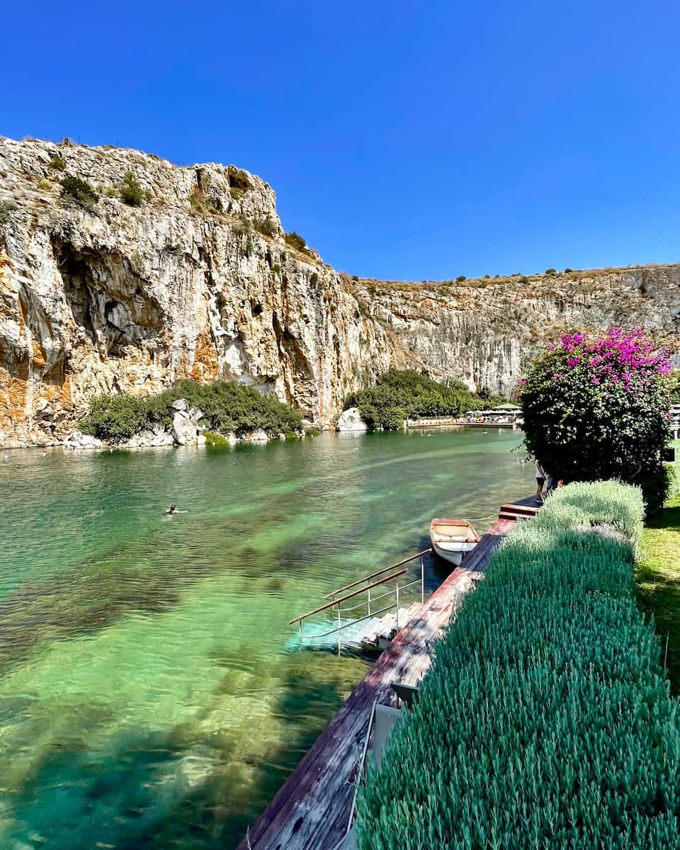 Lake Vouliagmeni. This mineral-rich lake is said to have therapeutic properties and offers a unique swimming experience. The water maintains a constant temperature of 22-29°C year-round, making it perfect for a swim even in cooler months. I found the sensation of tiny fish nibbling at my feet both ticklish and oddly relaxing!