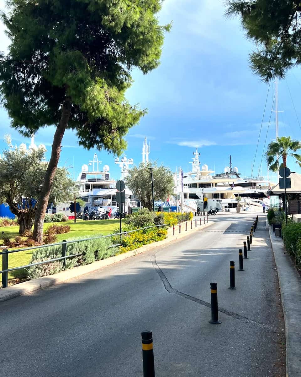 Yacht Paradise. As I wandered along Akti Themistokleous Street, the sight of luxury yachts bobbing in the circular natural bay took my breath away. Marina Zeas was once the largest naval base of ancient Athens, where hundreds of triremes launched into the Saronic Gulf.