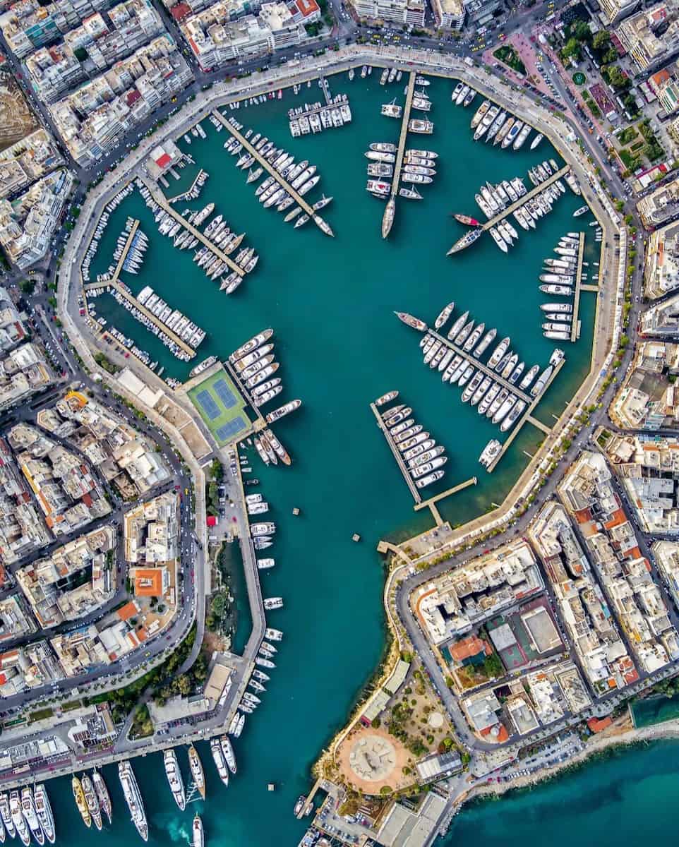 Perfect Harbor. Mikrolimano harbor is an almost perfect oval with just a tiny opening on its east side. Once Athens’ main naval port dedicated to goddess Artemis (Mounichia), today it’s lined with upscale seafood restaurants where ancient ship sheds once stood.