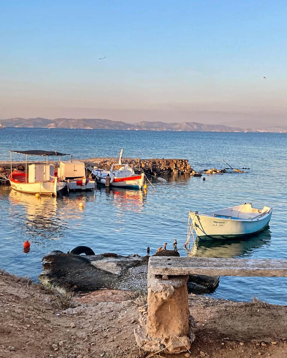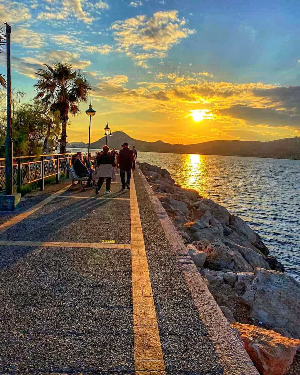 Piraiki Coastline. Several points along the coastal promenade offer perfect sunset viewing. I found a quiet spot on the rocks where I could watch the sun sink into the sea while fishing boats returned to harbor. The views extend all the way to the Saronic islands on clear days.