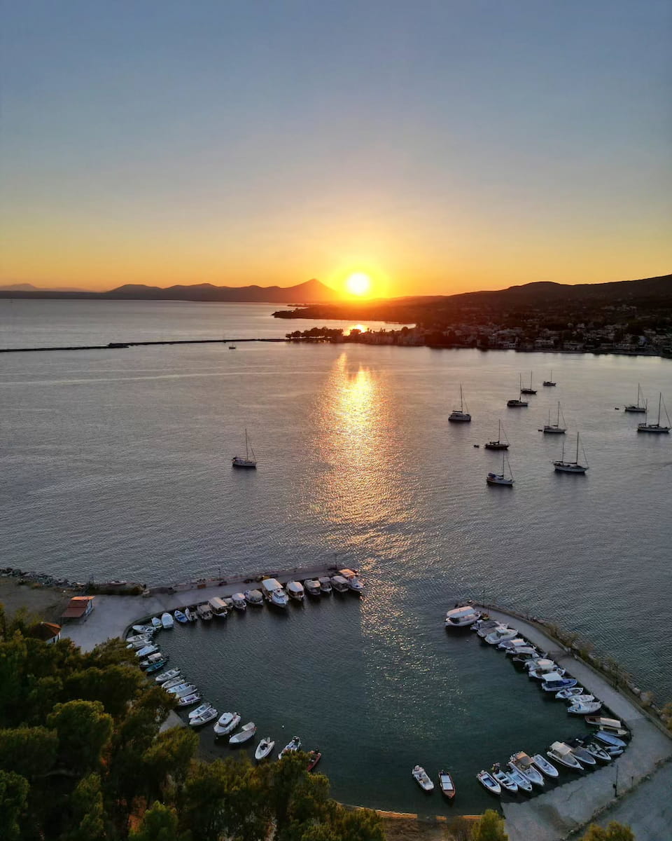 Bay of Zea (Pasalimani). As the second largest of Piraeus’ three ports, the Bay of Zea offers stunning sunset views over the Saronic Gulf. The marina with its luxury yachts creates a beautiful foreground for sunset photos. After sunset, the area comes alive with the lights from cafes and restaurants reflecting on the water.