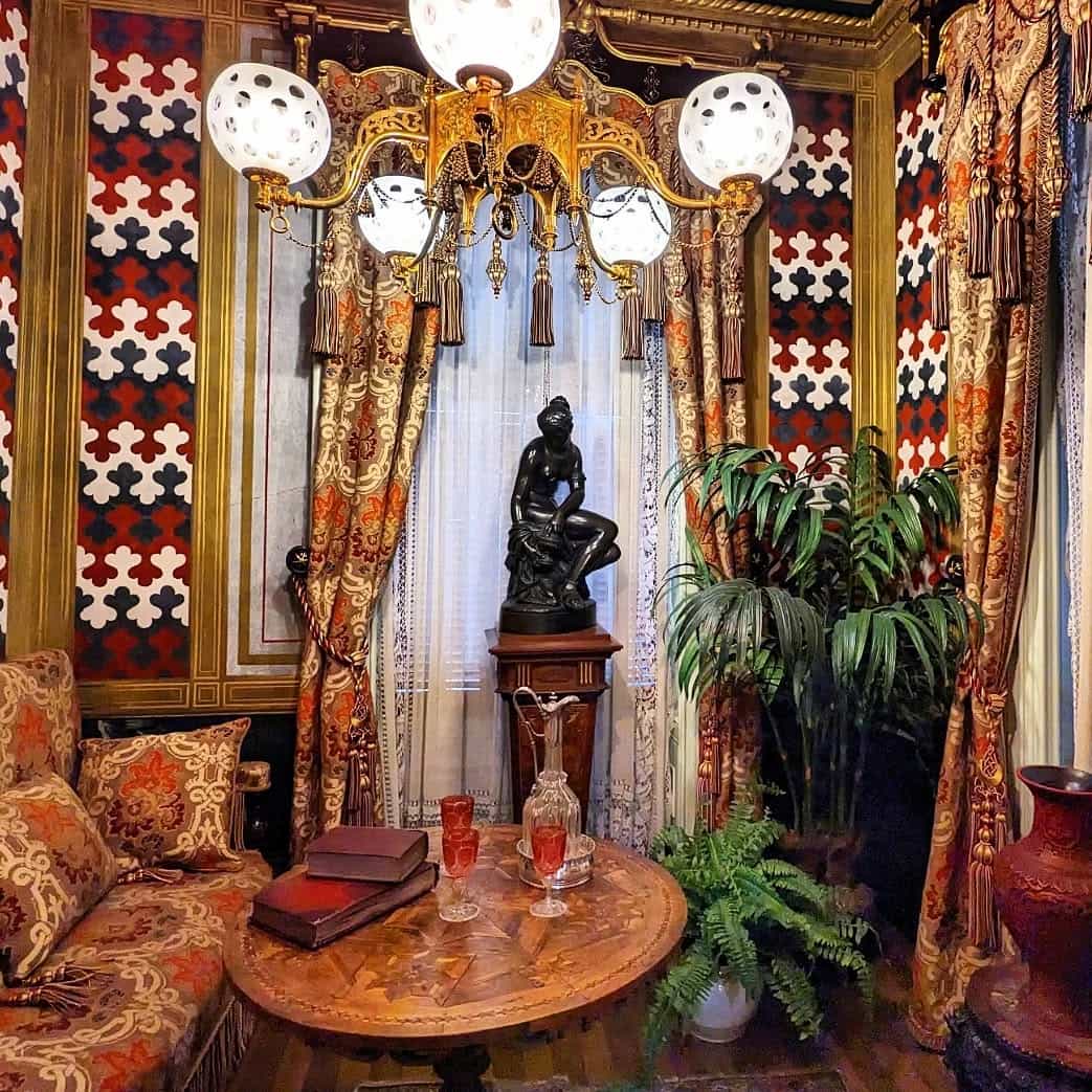 - Turkish smoking room with intricate Islamic-inspired designs
